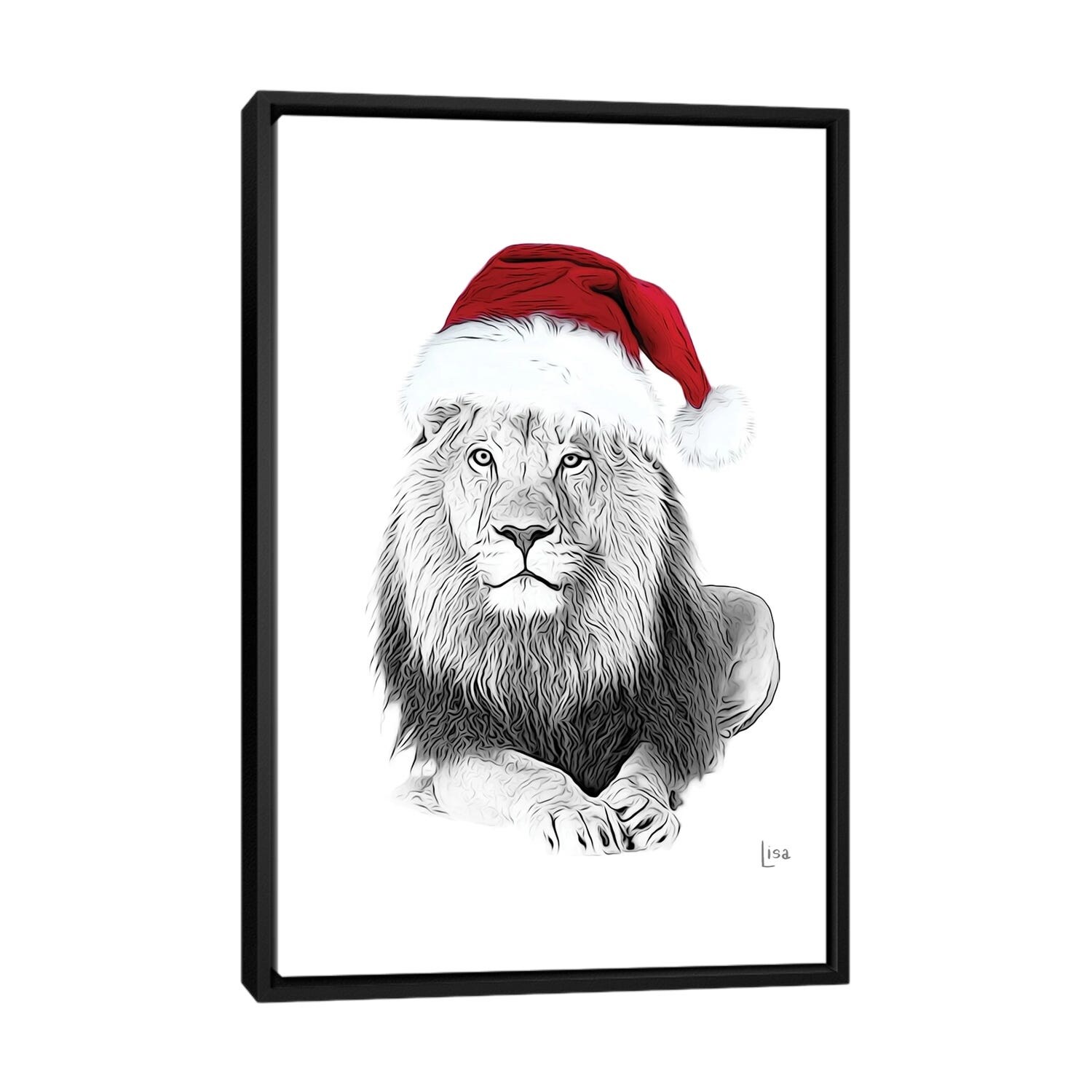 iCanvas "Christmas Lion With Glasses And Hat" by Printable Lisa's Pets Framed