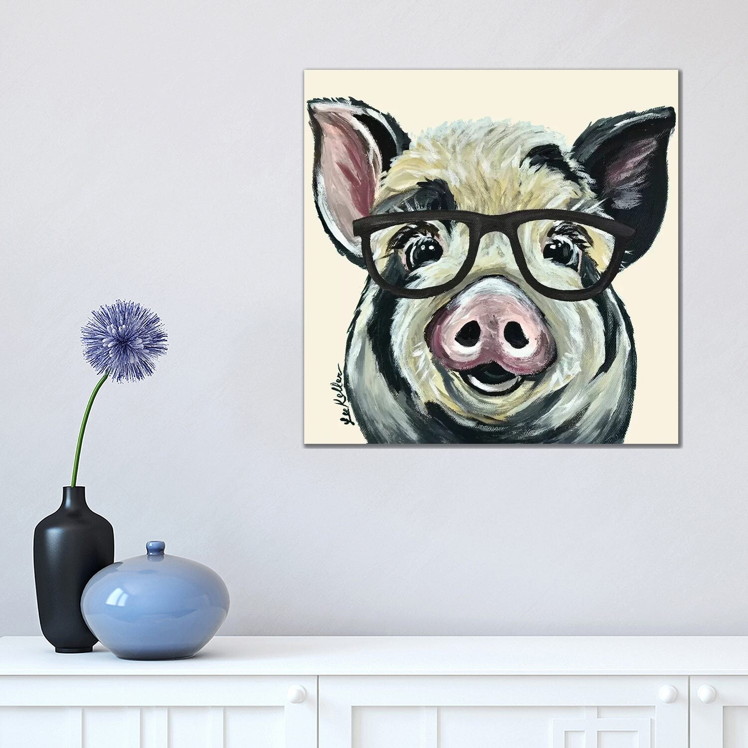 iCanvas "Pig Wilbur Glasses Blue" by Hippie Hound Studios Canvas Print