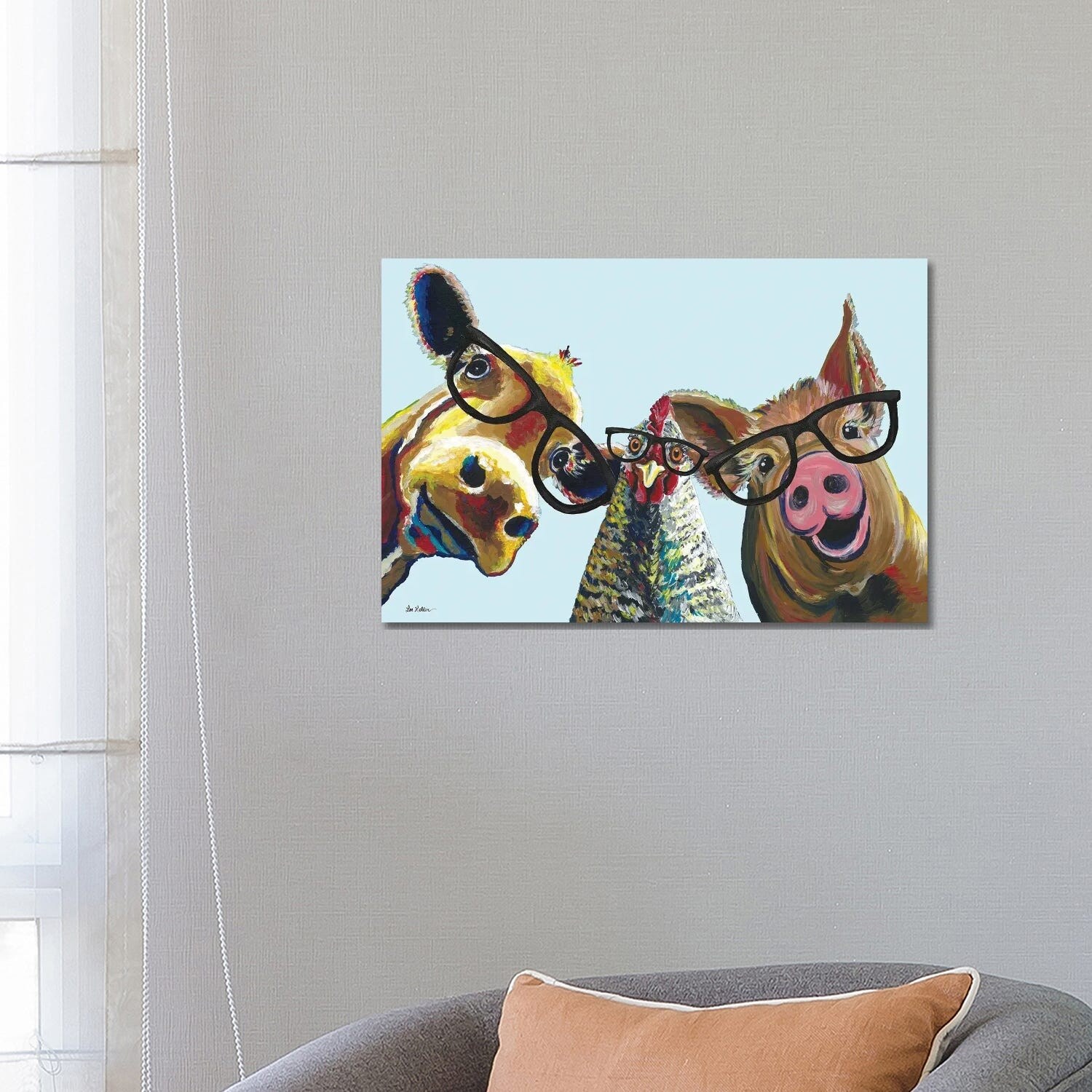 iCanvas "Triple The Fun, Farmhouse Animals Trio" by Hippie Hound Studios Canvas Print