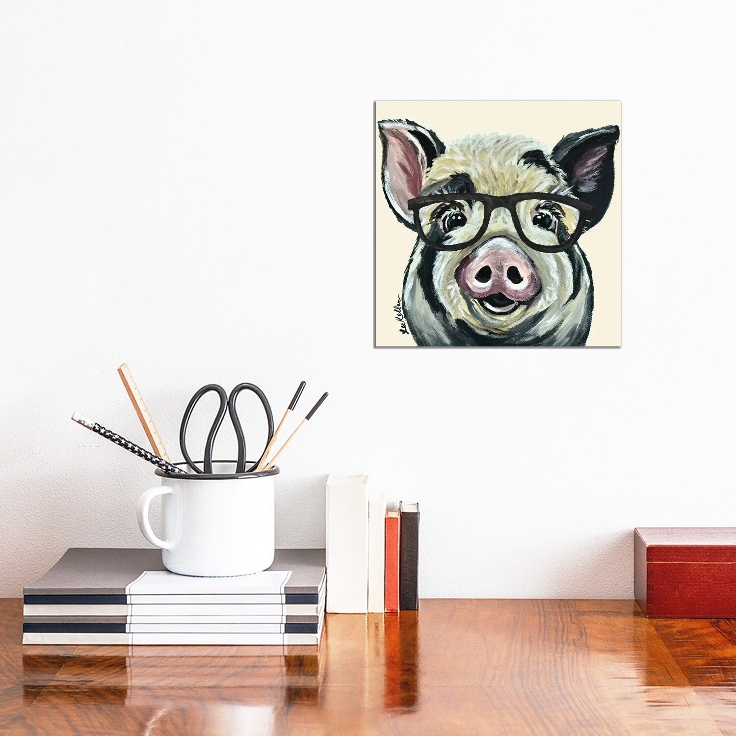 iCanvas "Sarge The Pig With Glasses on Cream" by Hippie Hound Studios Canvas Print