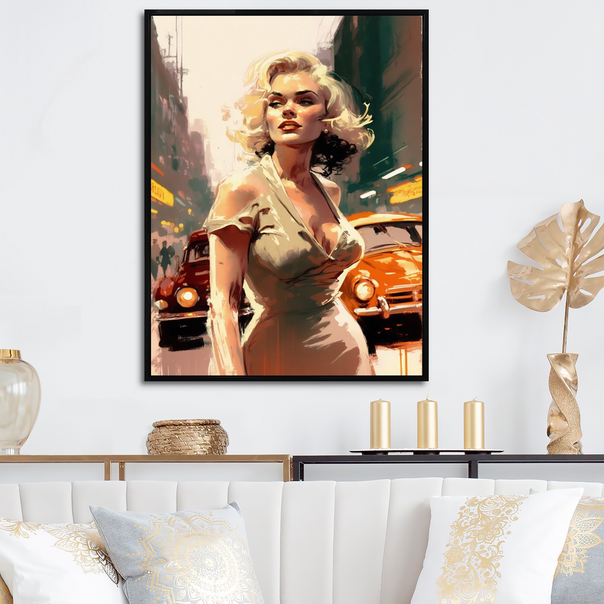 Designart "Hollywood Bombsell III" Woman Photography Framed Canvas Art Print