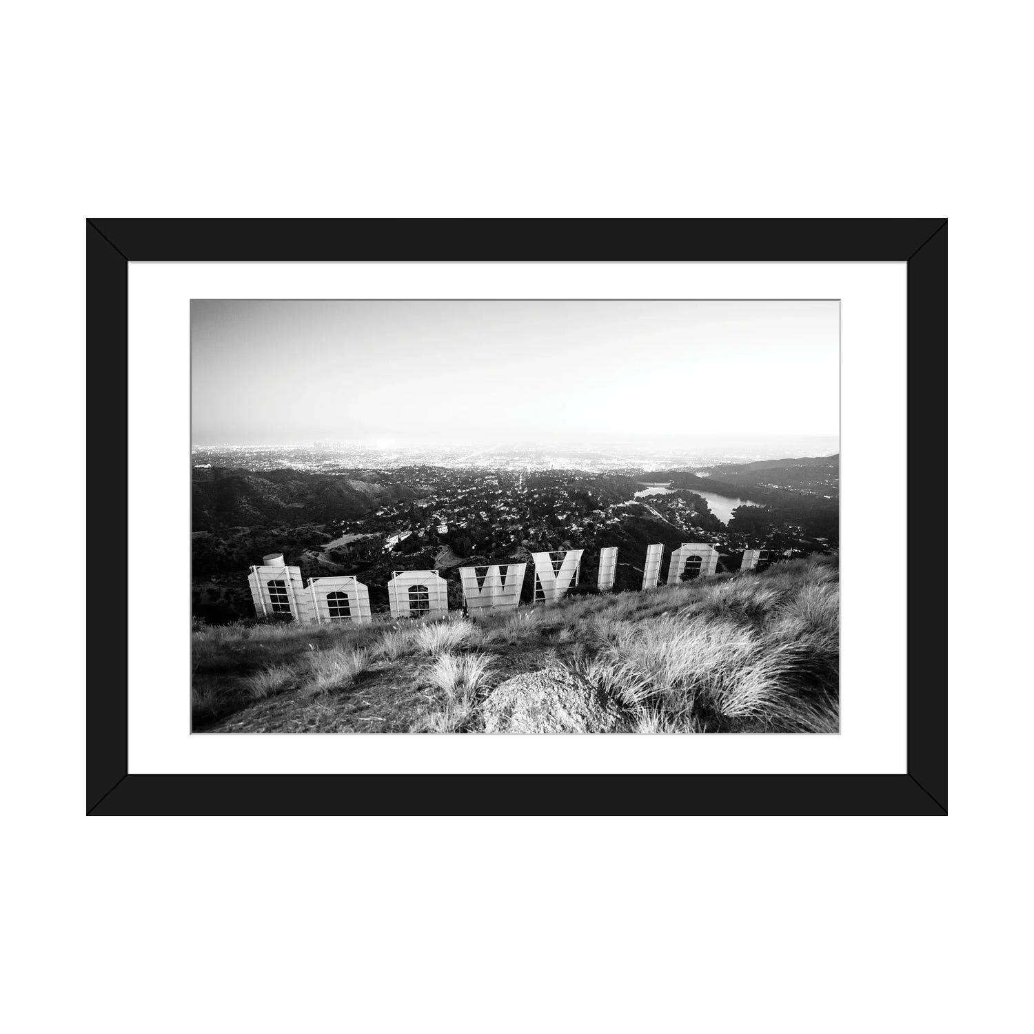 iCanvas "Black California Series - Hollywood Sign" by Philippe Hugonnard Framed Canvas Print