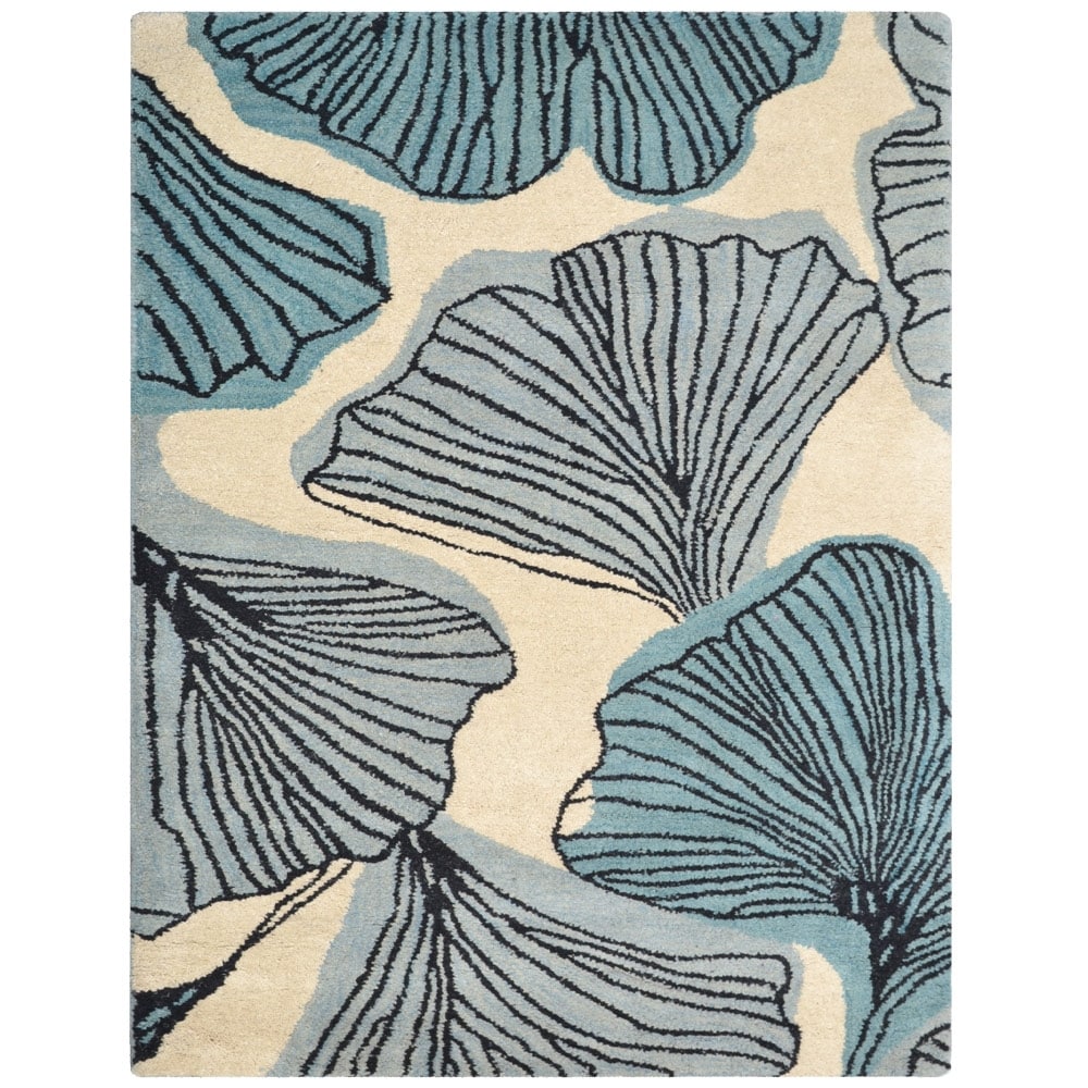 Hand Tufted Wool 3'x5' Area Rug Floral Cream Blue