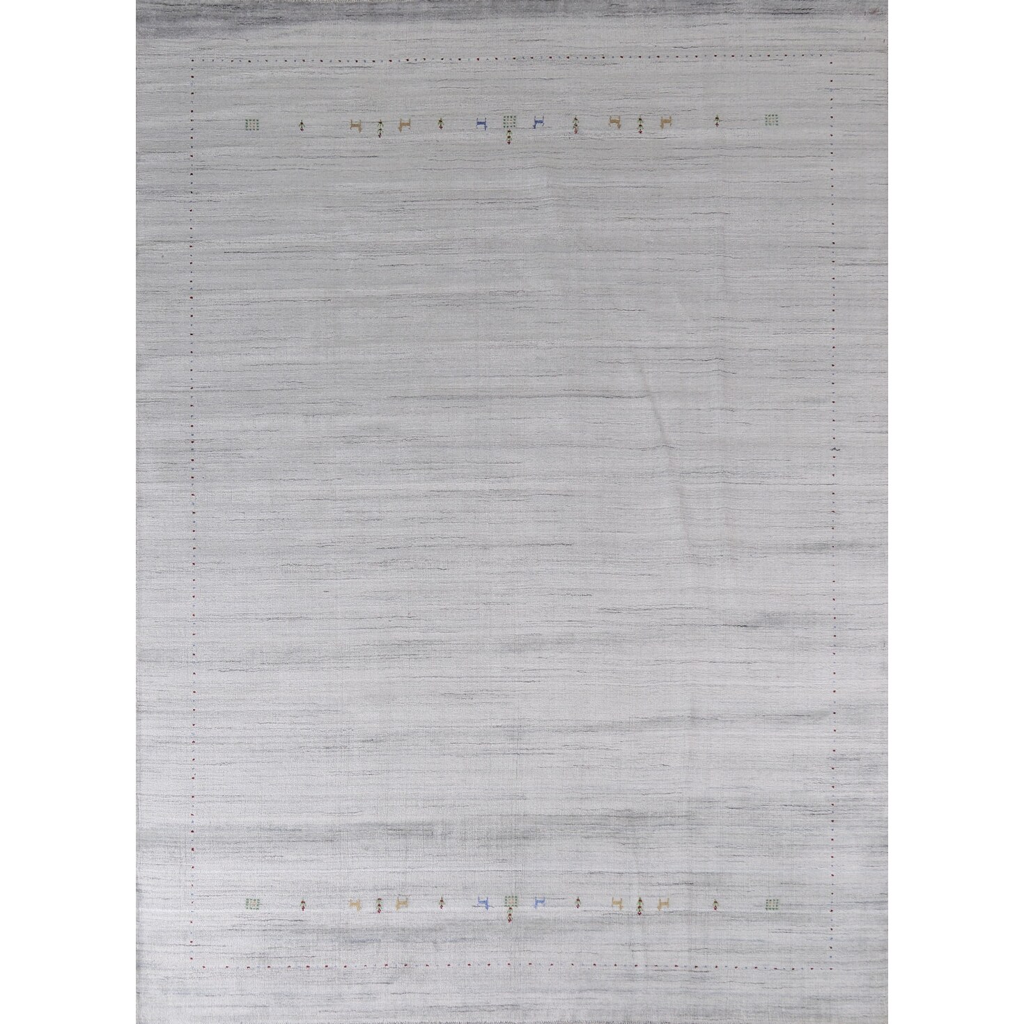 Tribal Stripe Ivory Gabbeh Oriental Area Rug Handmade Wool Carpet - 8'2" x 9'11"
