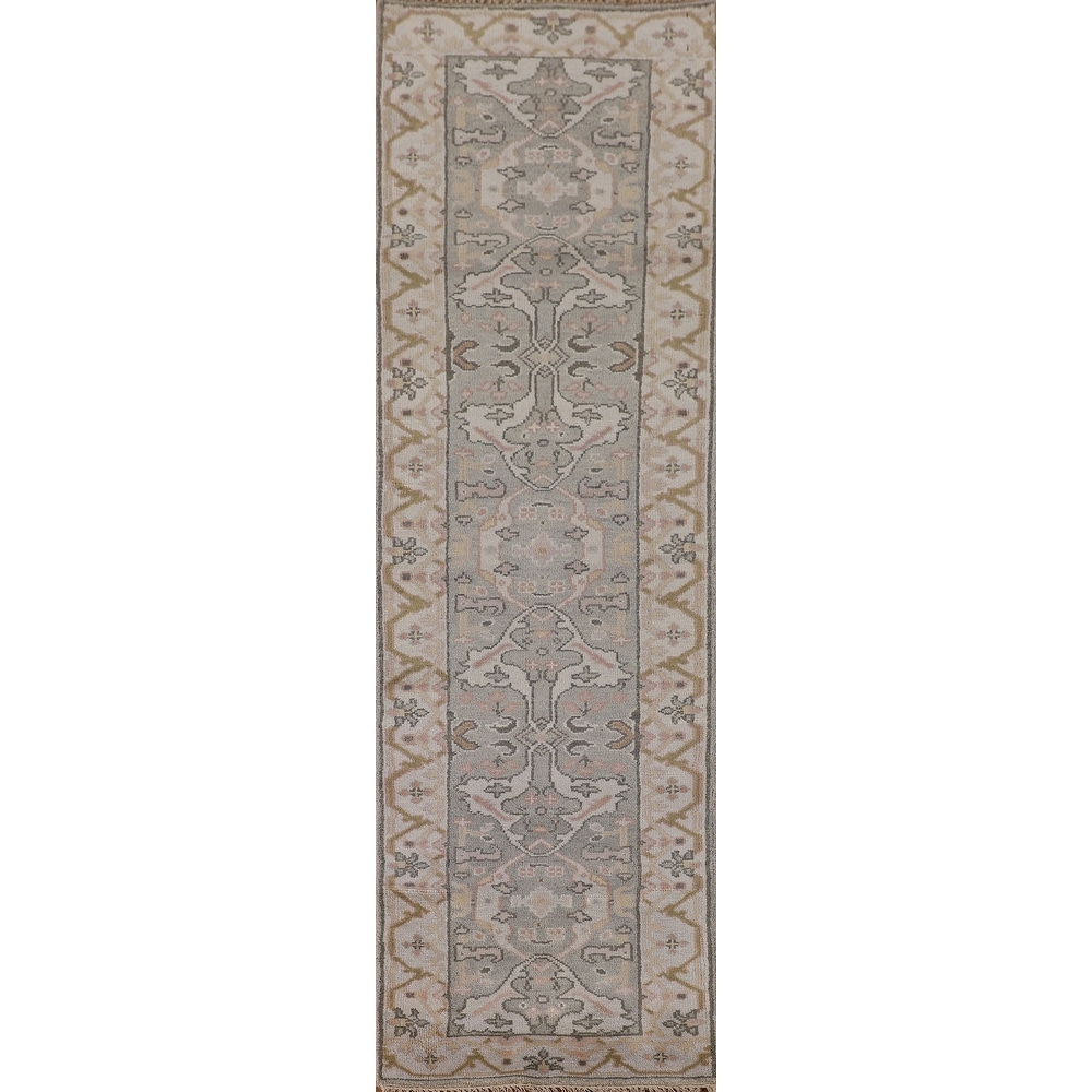 Floral Grey Oushak Oriental Runner Rug Handmade Wool Carpet - 2'7"x 9'11"