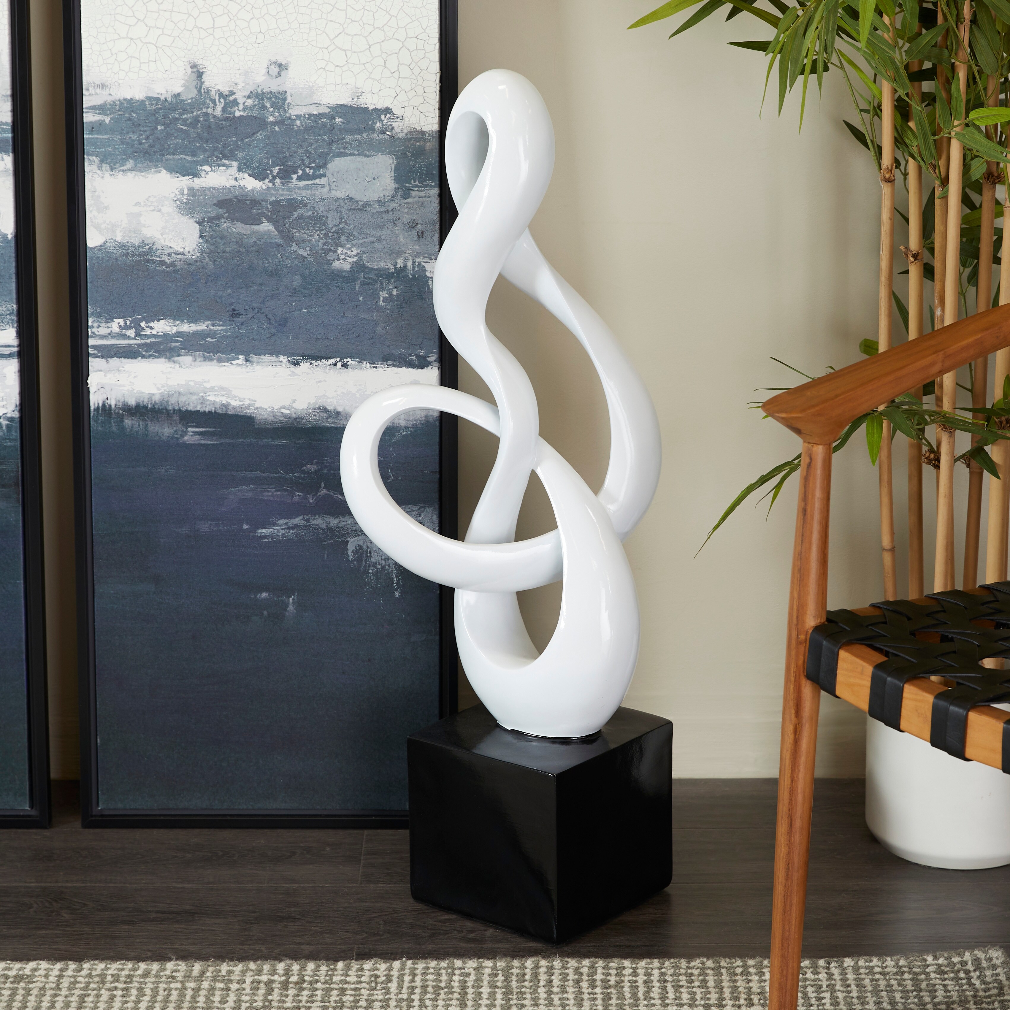 Red or White Polystone Swirl Abstract Sculpture with Black Base