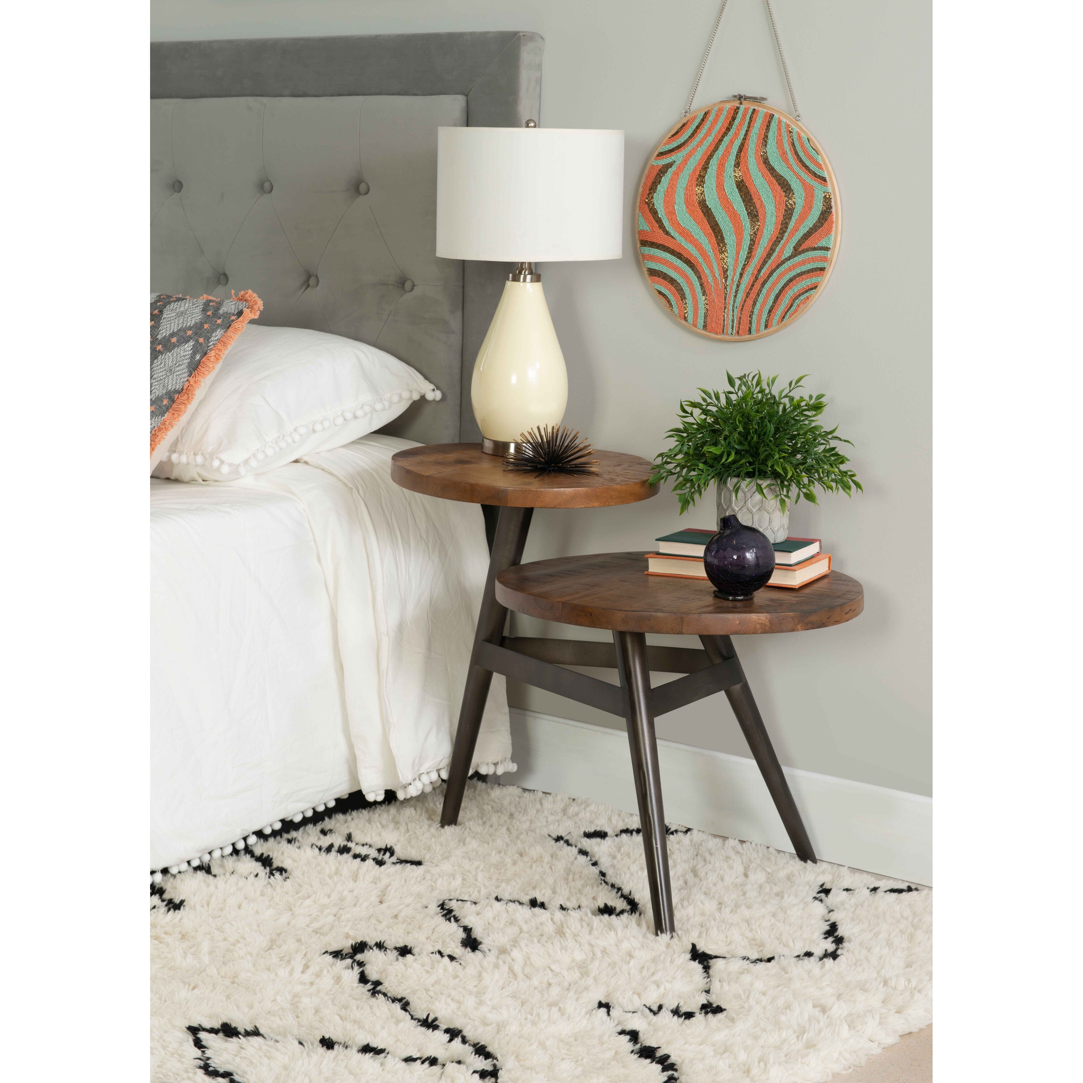 Collis Urban Round Metal 2-Tier Accent Side Table, Gunmetal Gray Base with Natural Top