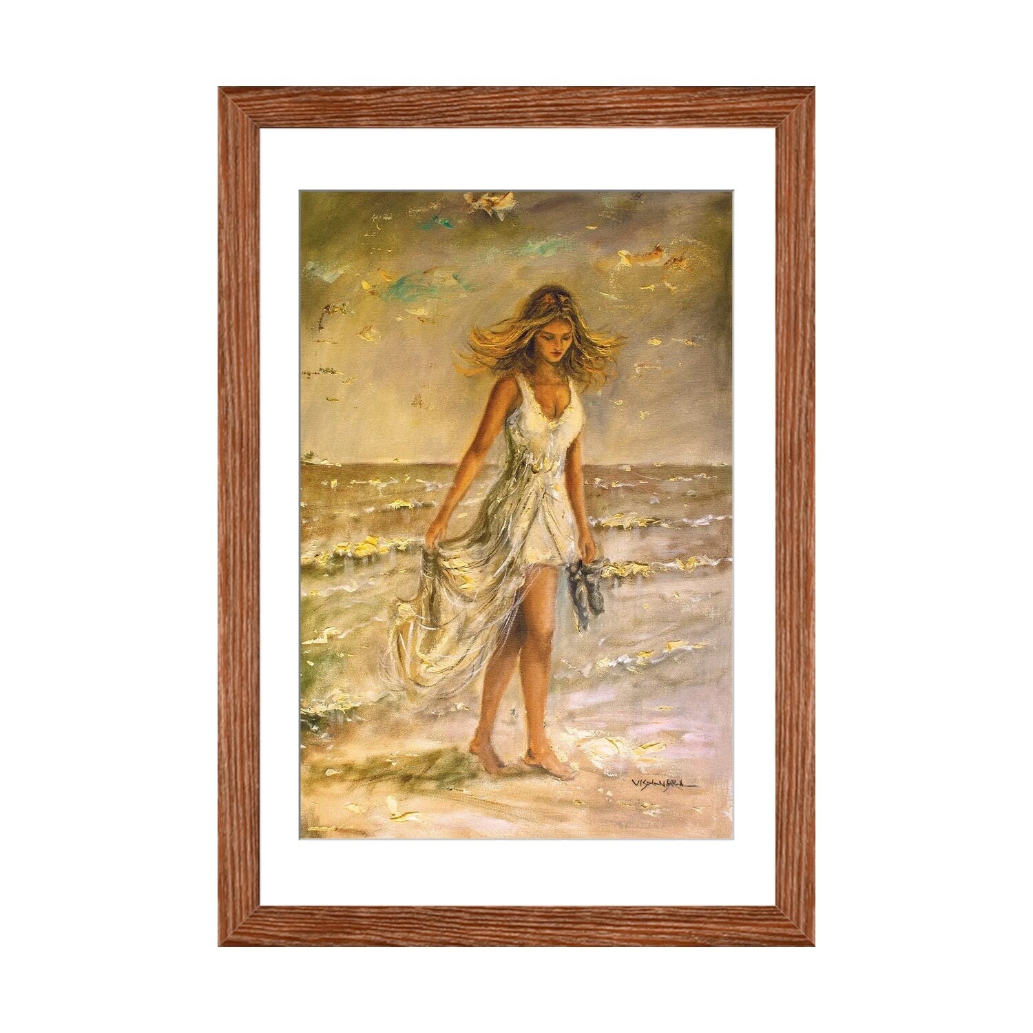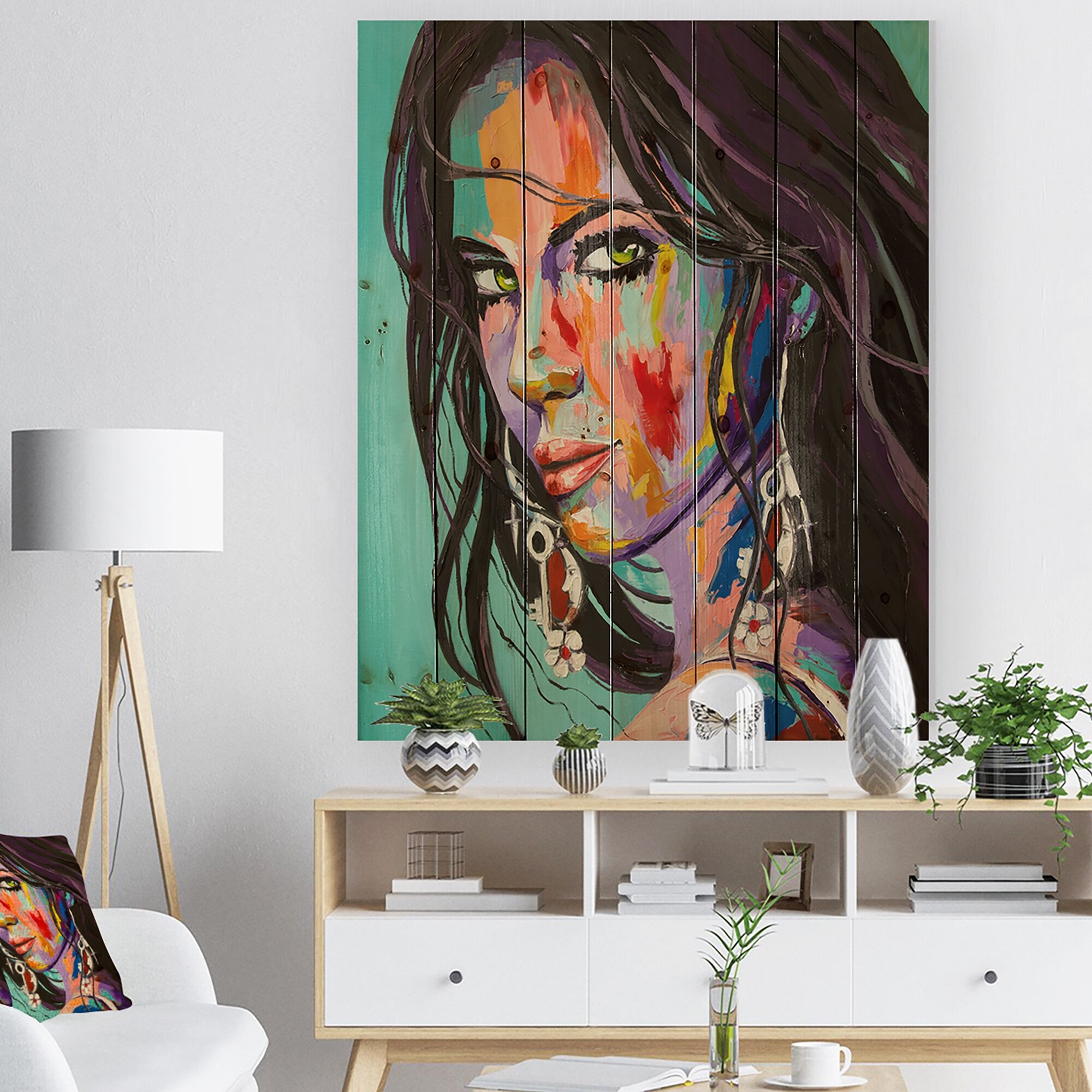 Designart 'Woman Portrait Be Careful' Glamour Print on Natural Pine Wood - Multi-color