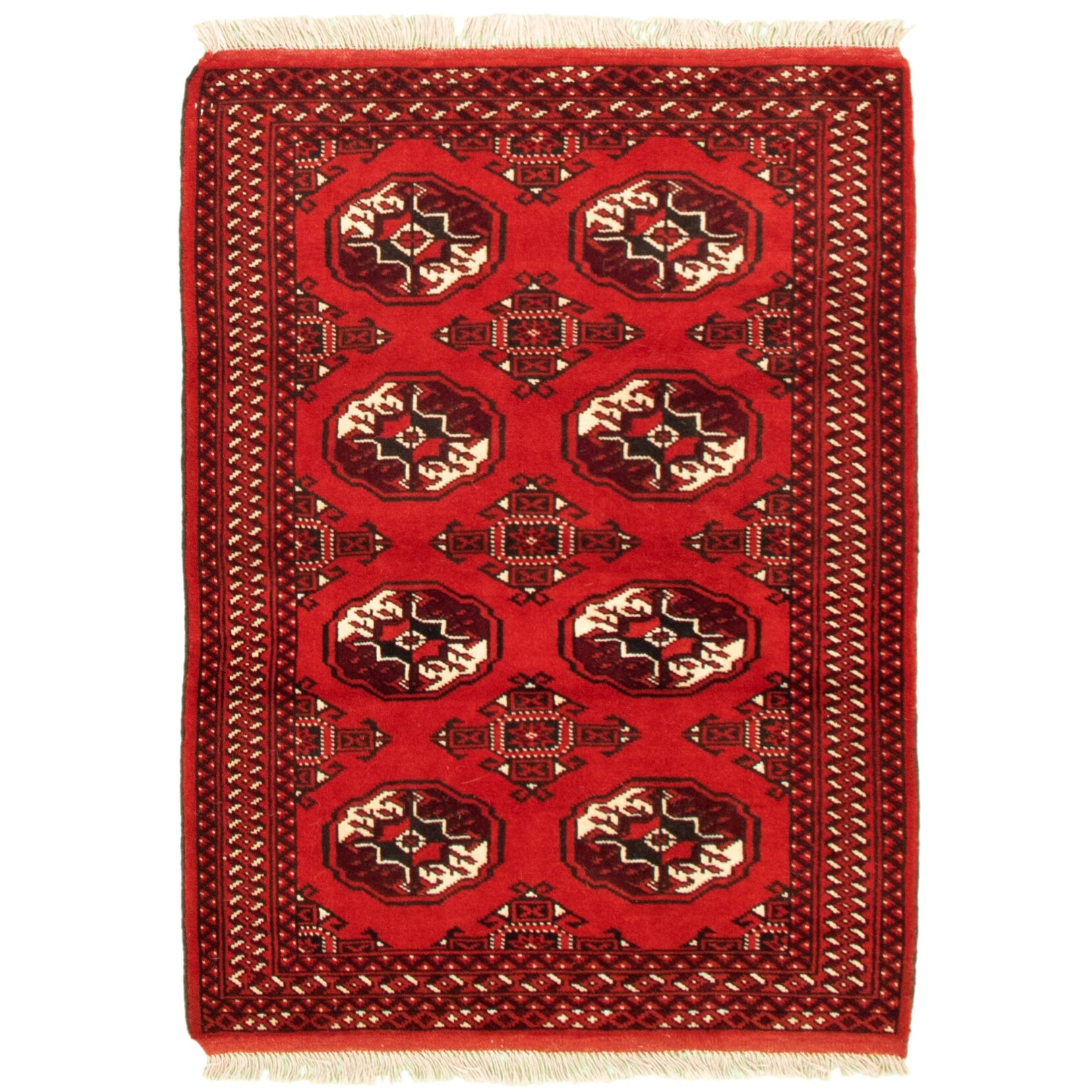 ECARPETGALLERY Hand-knotted Turkman Red Wool Rug - 3'4" x 4'9"