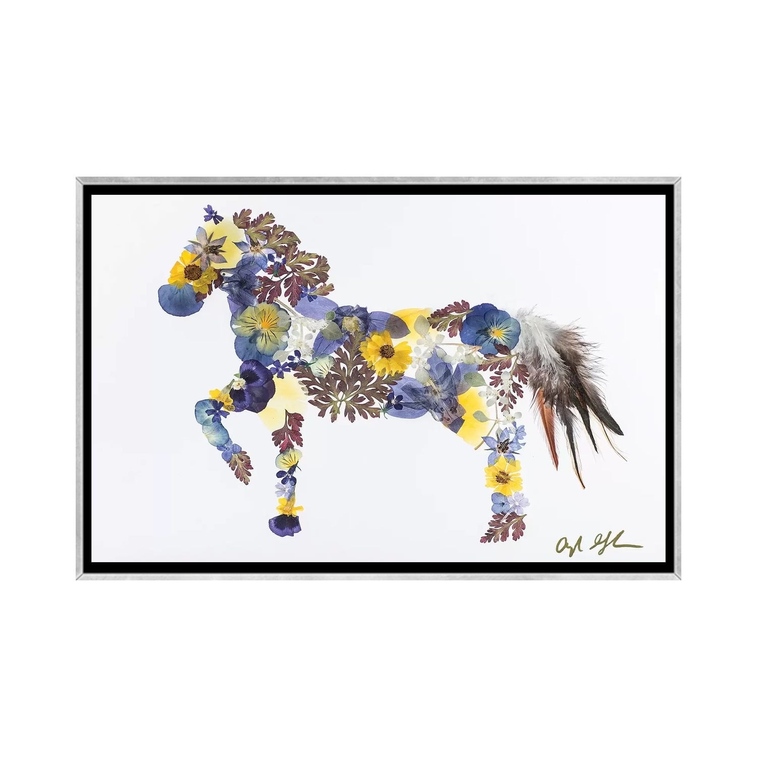 iCanvas "Horse - Blue And Yellow" by Oxeye Floral Co Framed