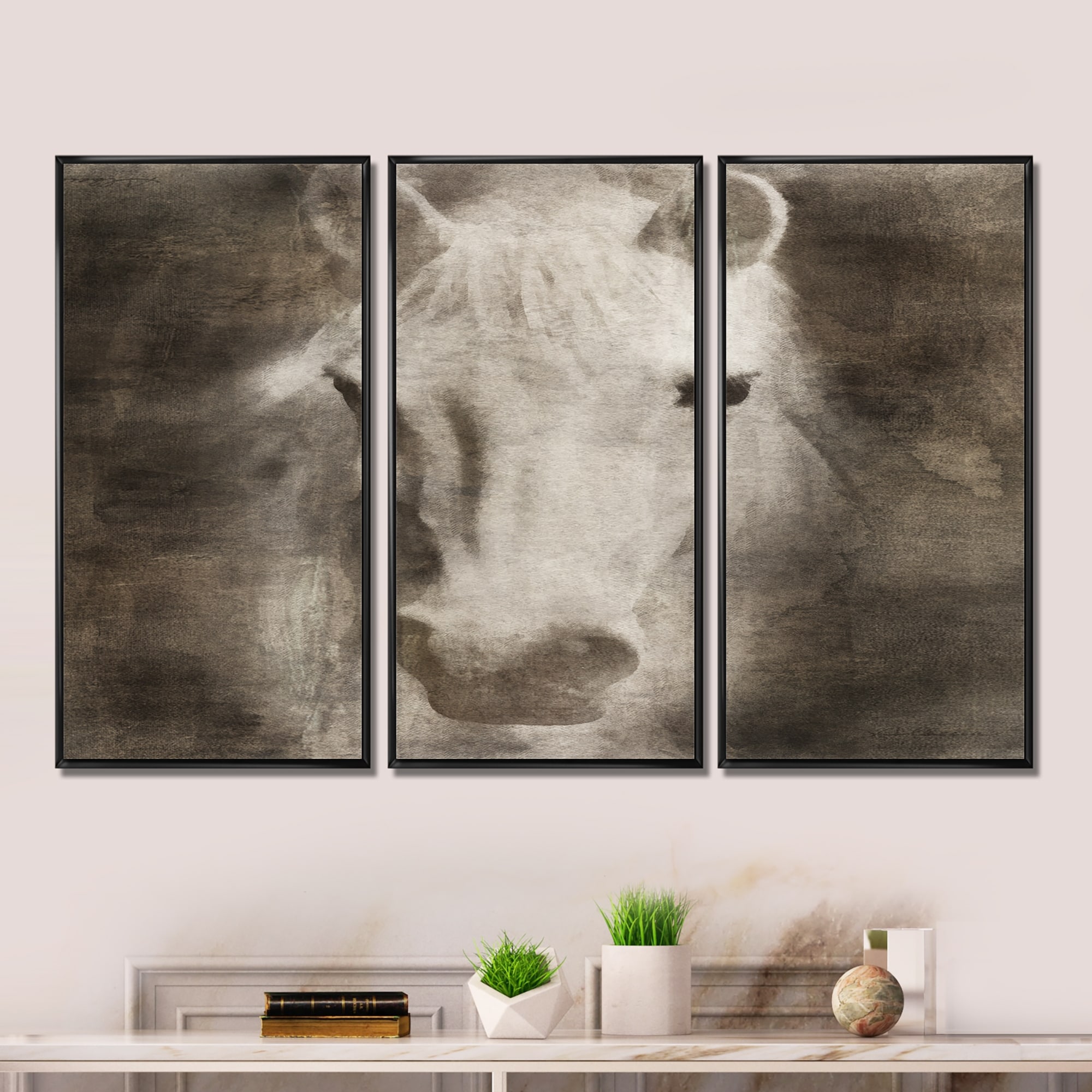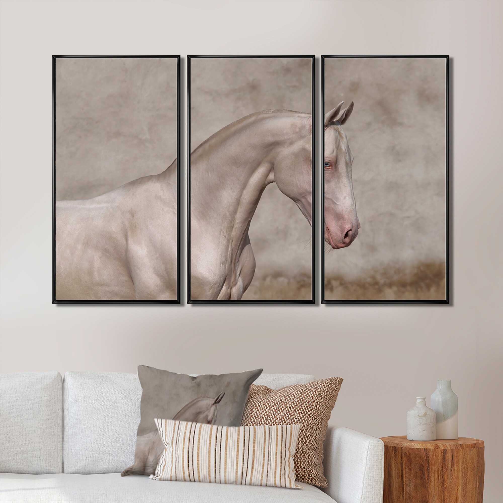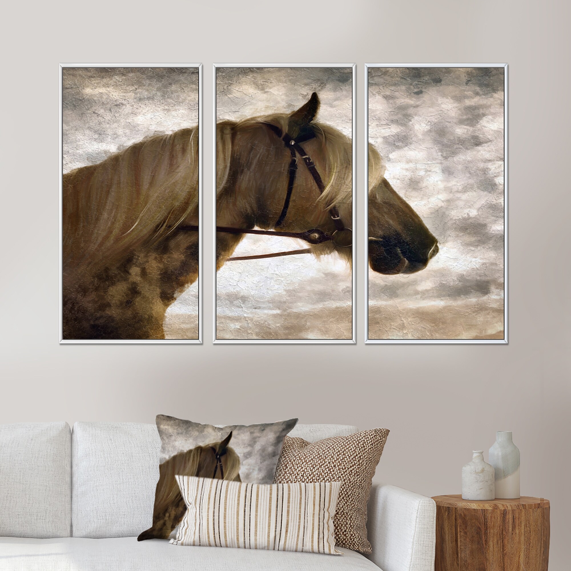 Designart "Farmhouse Horse III" Farmhouse Framed Canvas Wall Art Print Set of 3 - 4 Colors of Frames