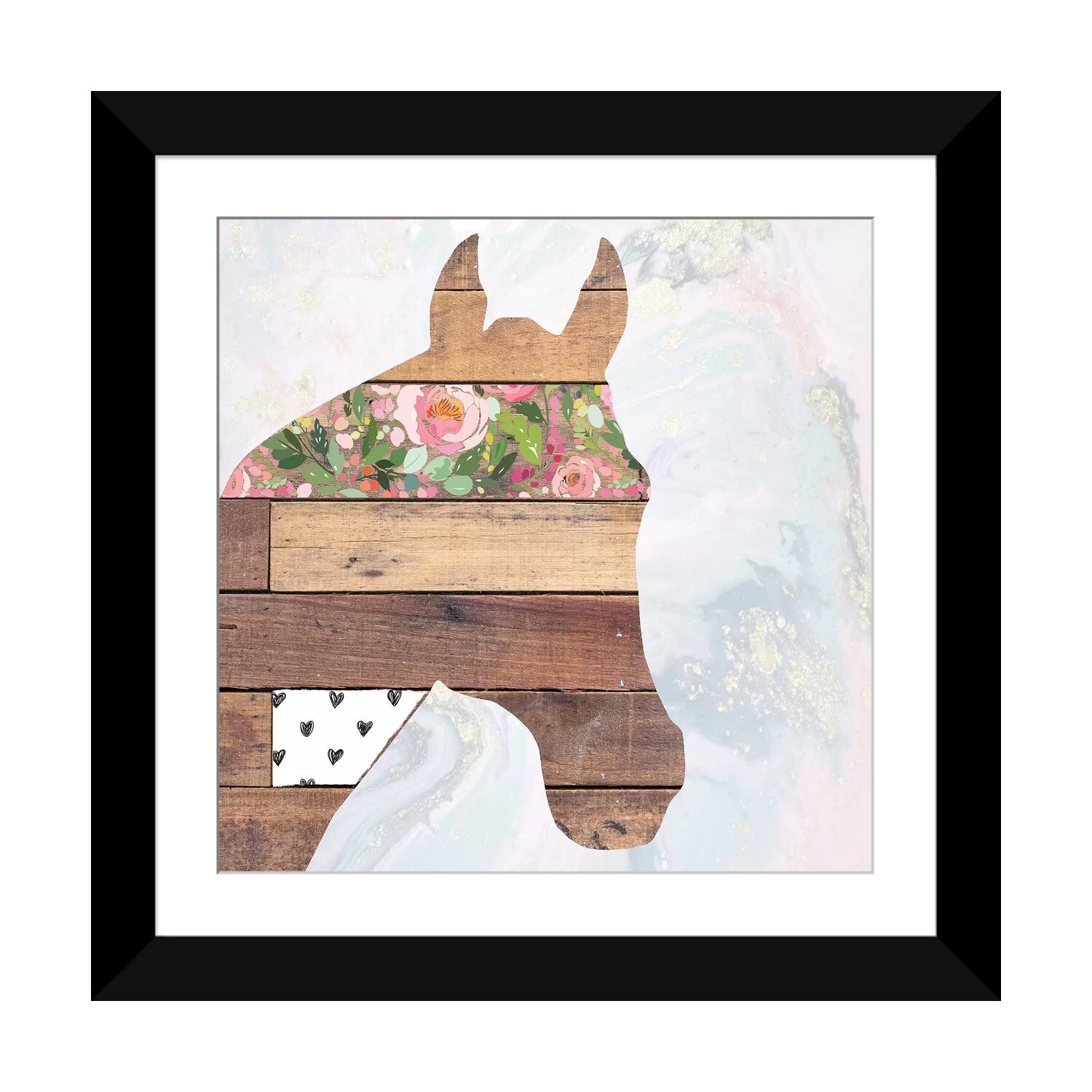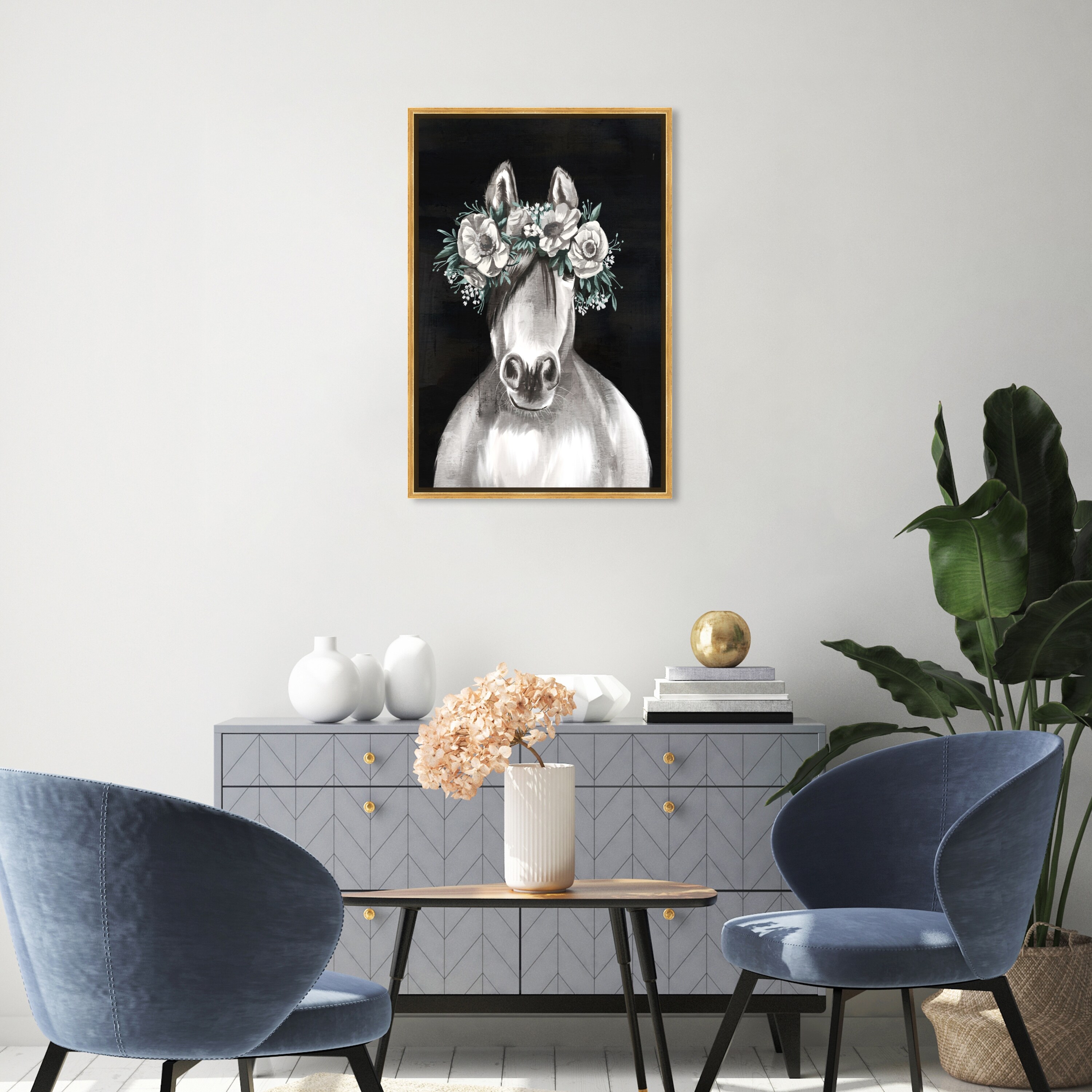 Oliver Gal 'Gorgeous Floral Horse' Animals Wall Art Framed Canvas Print Farm Animals - Gray, Black