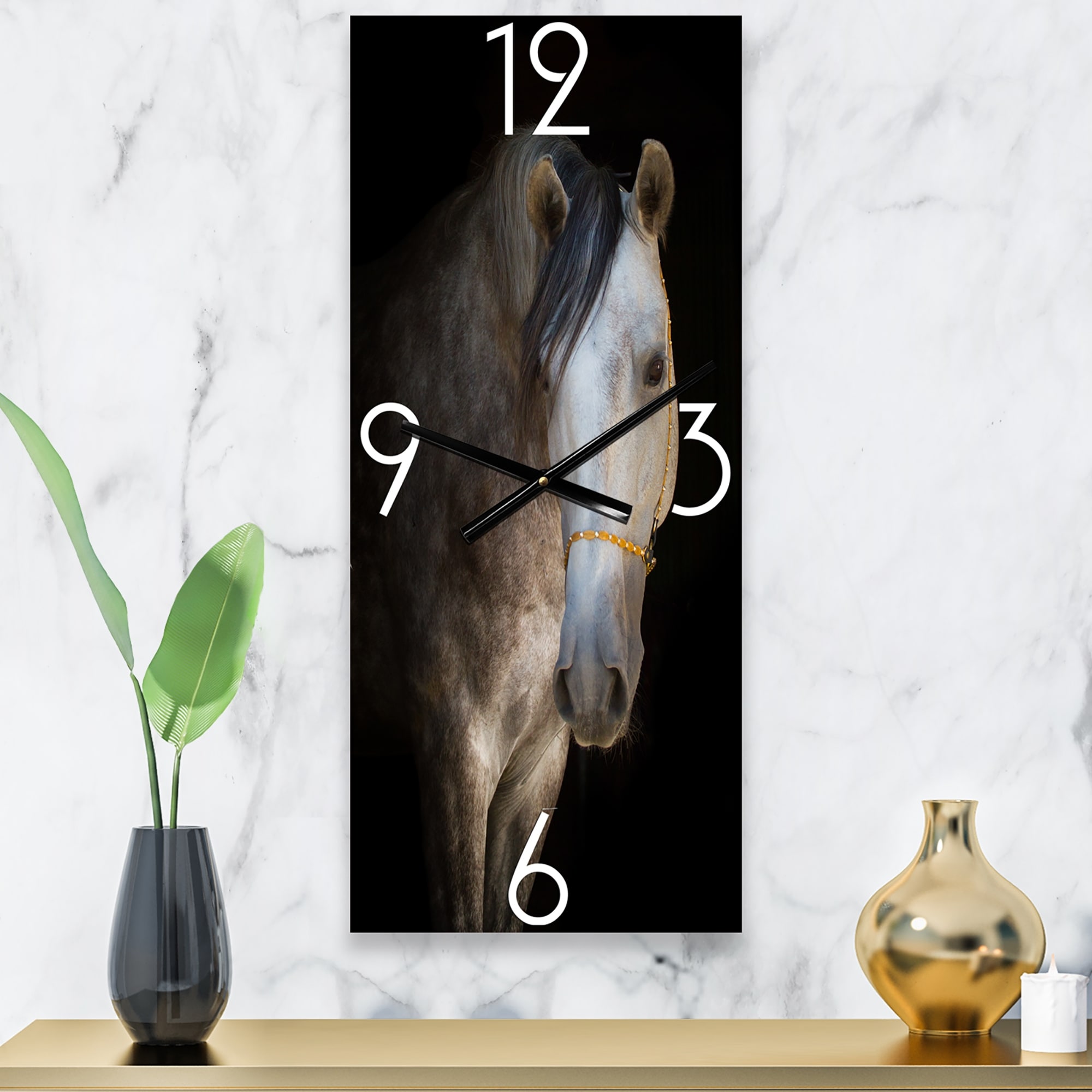 Designart 'Portrait Of a White Horse' Farmhouse Large Wall Clock