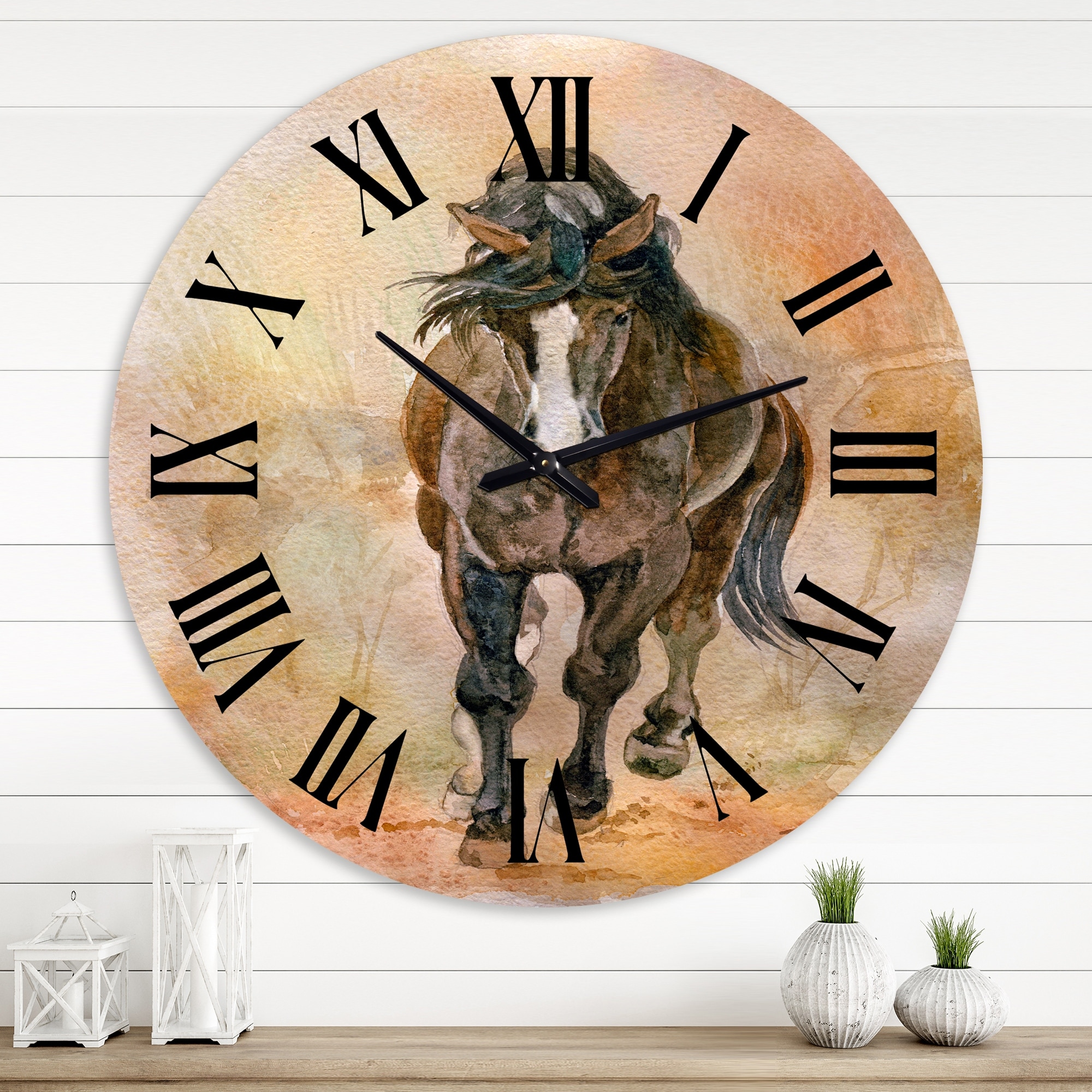 Designart 'Portrait Of Beautiful Chestnut Horse I' Farmhouse wall clock