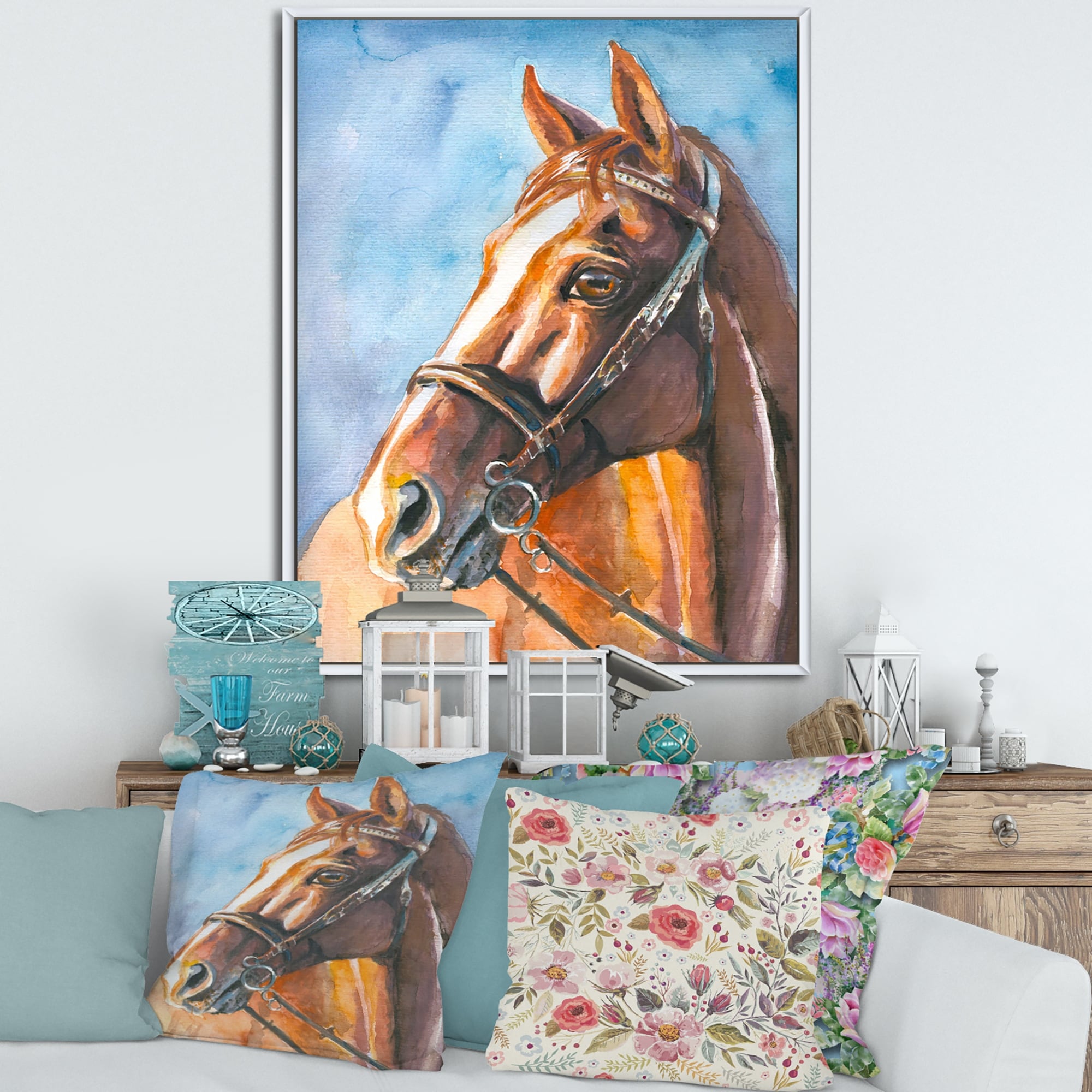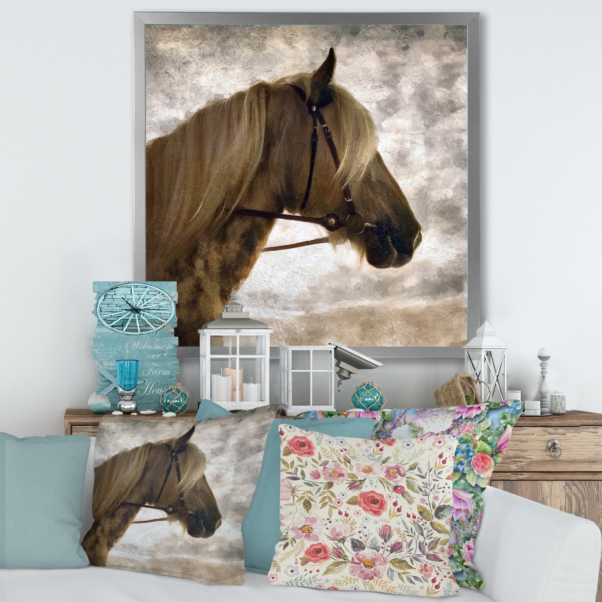 Designart "Portrait of a Brown Horse" Farmhouse Framed Canvas Wall Art Print