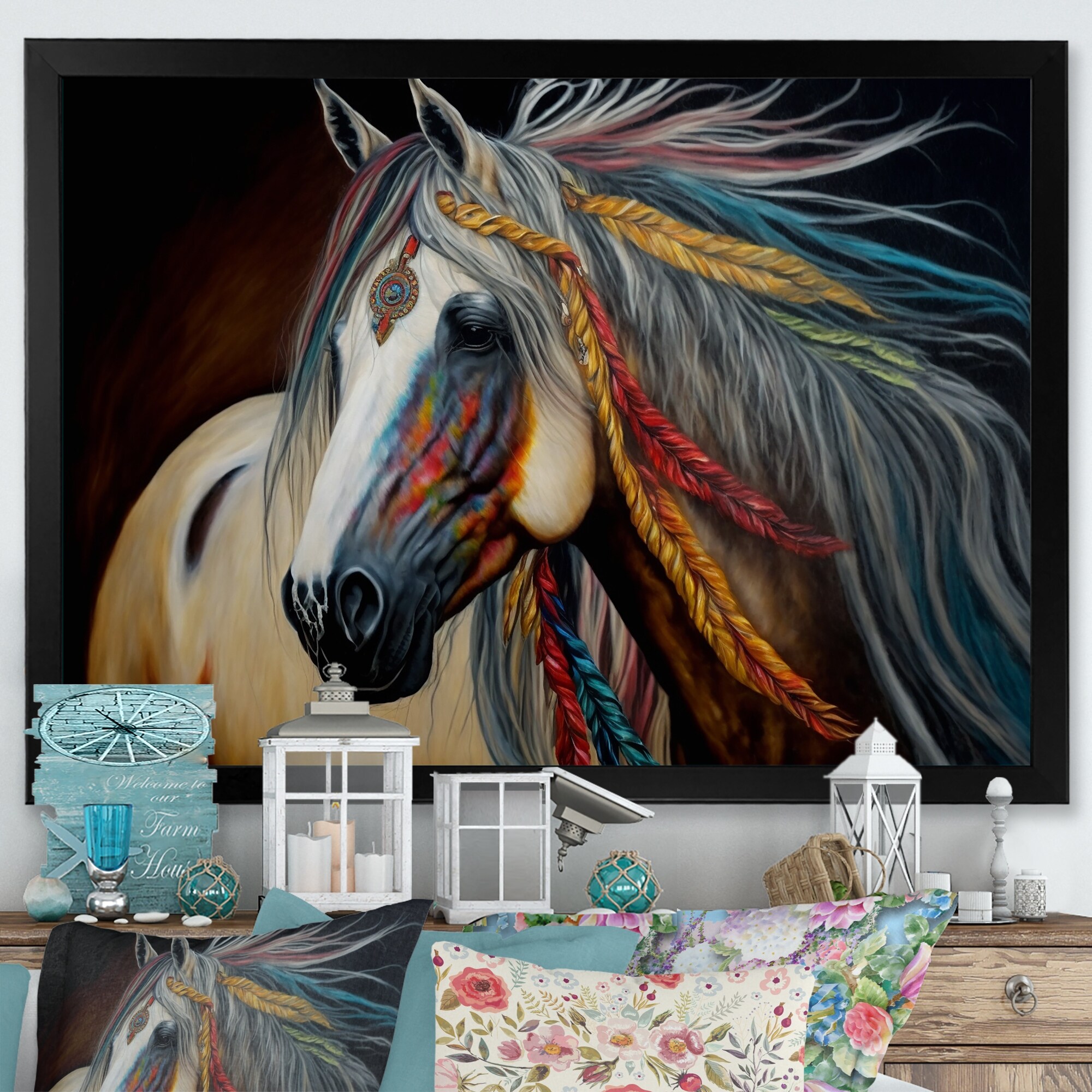 Designart "Colorful Native American Horse IV" Modern Framed Art Print