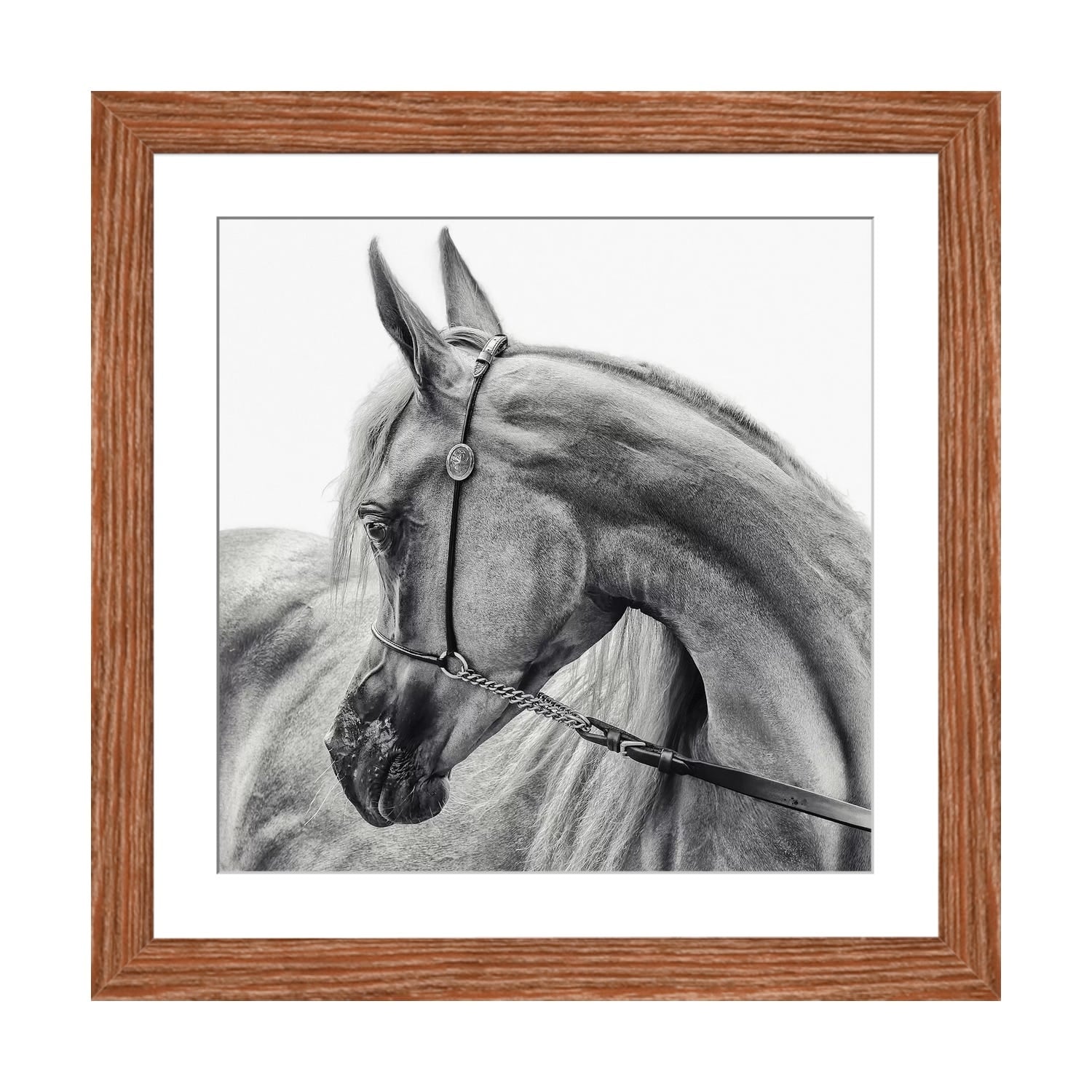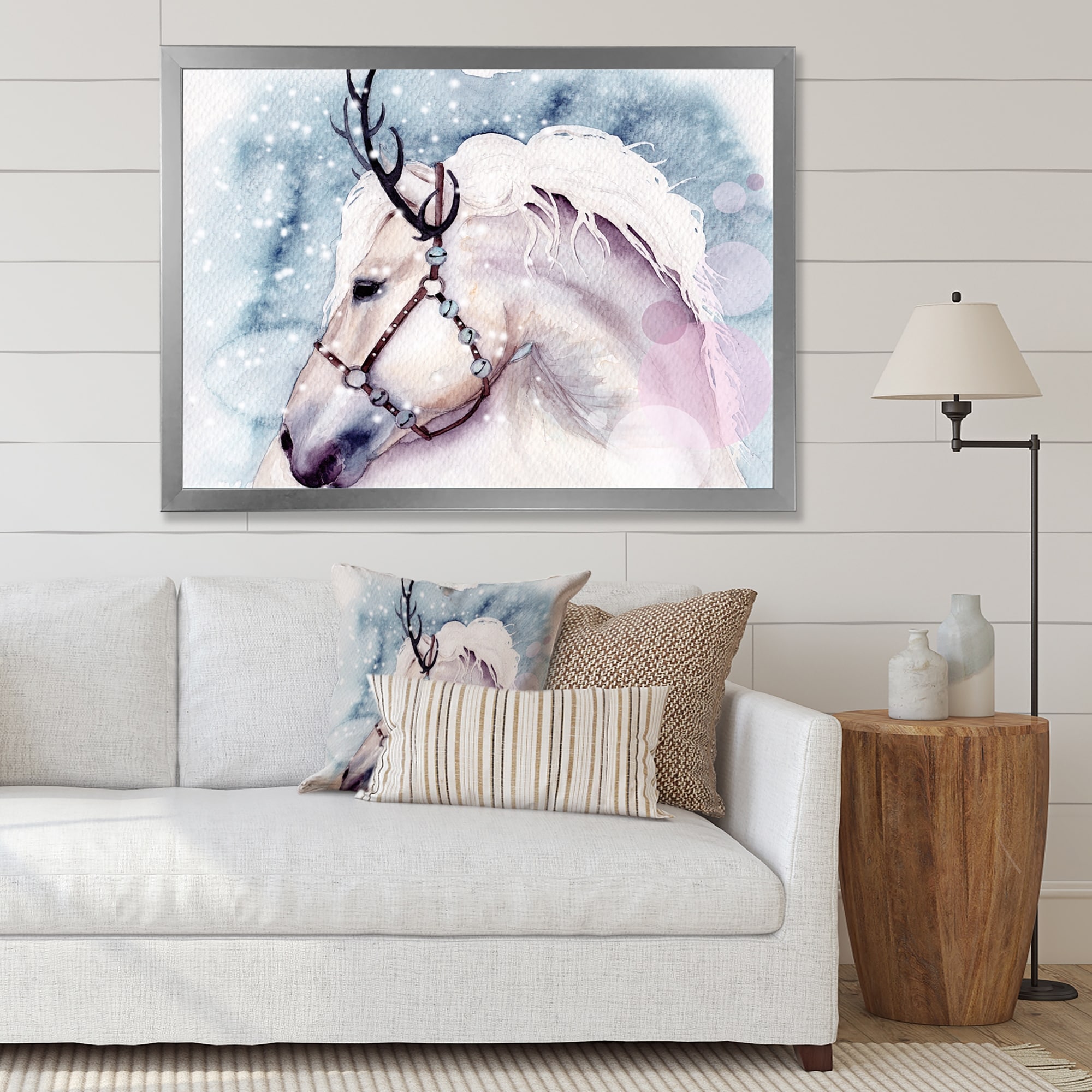 Designart "A White Horse With A Snowwhite Mane With Bells" Traditional Framed Art Print