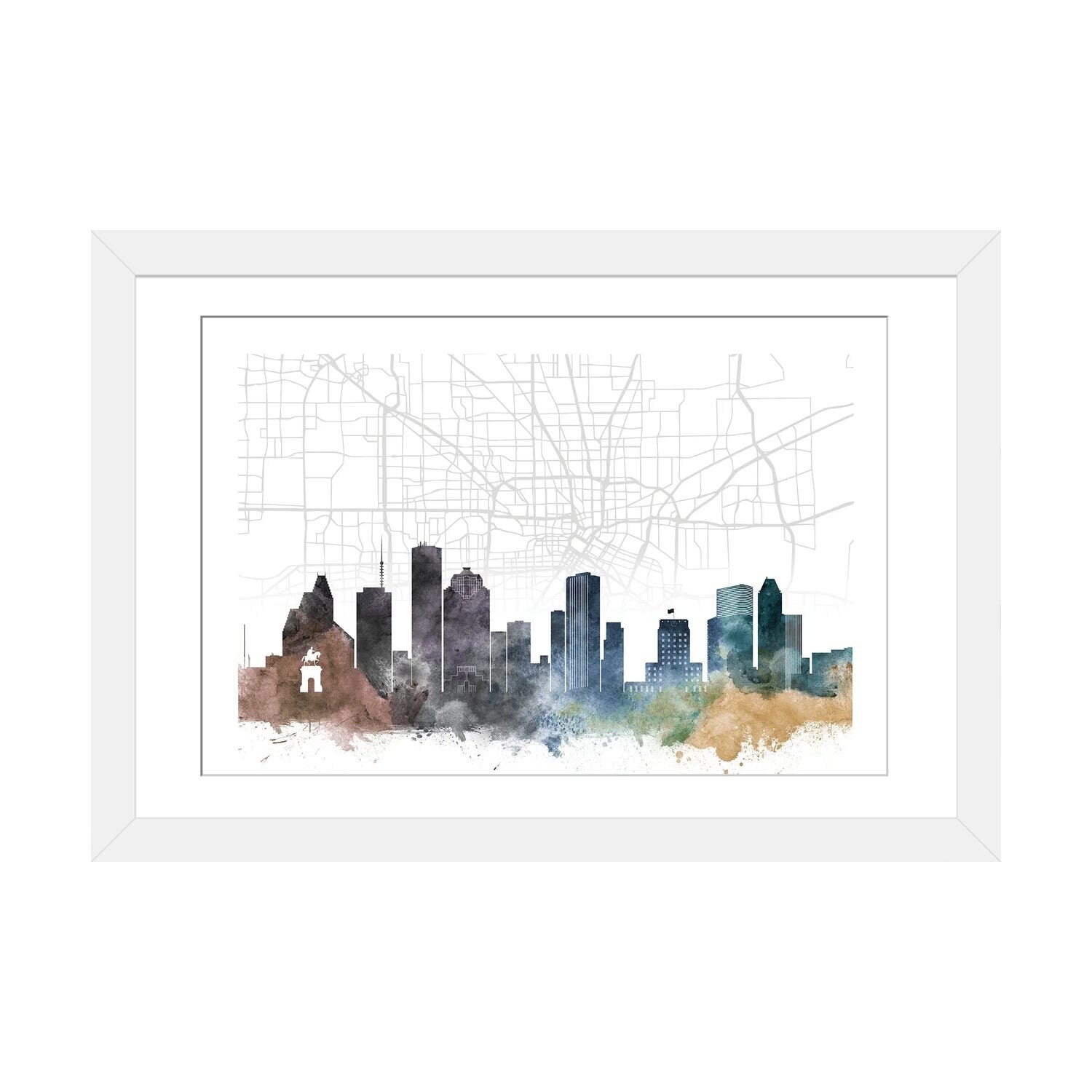 iCanvas "Houston Black And White Framed Skylines" by WallDecorAddict