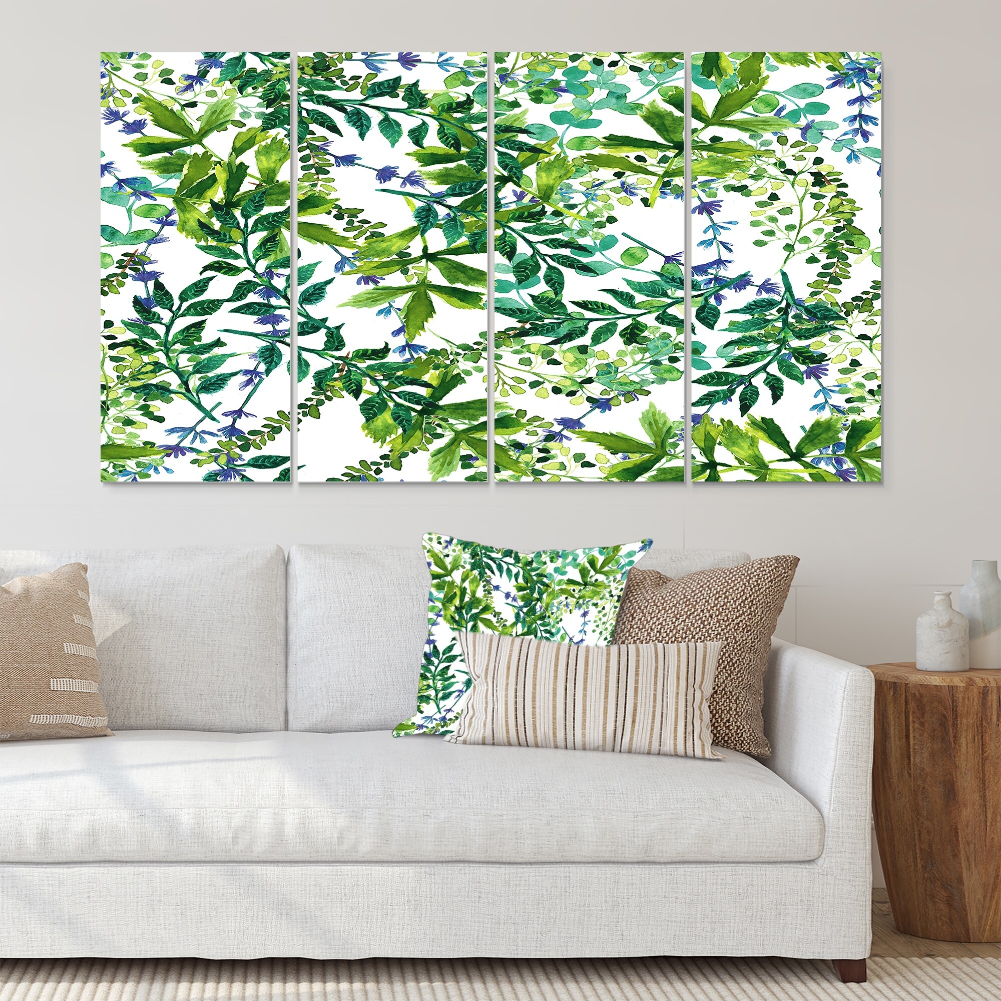 Designart "Green Herbs And Leaves on White" Patterned Canvas Wall Art Print - 60x32 - 5 Panels