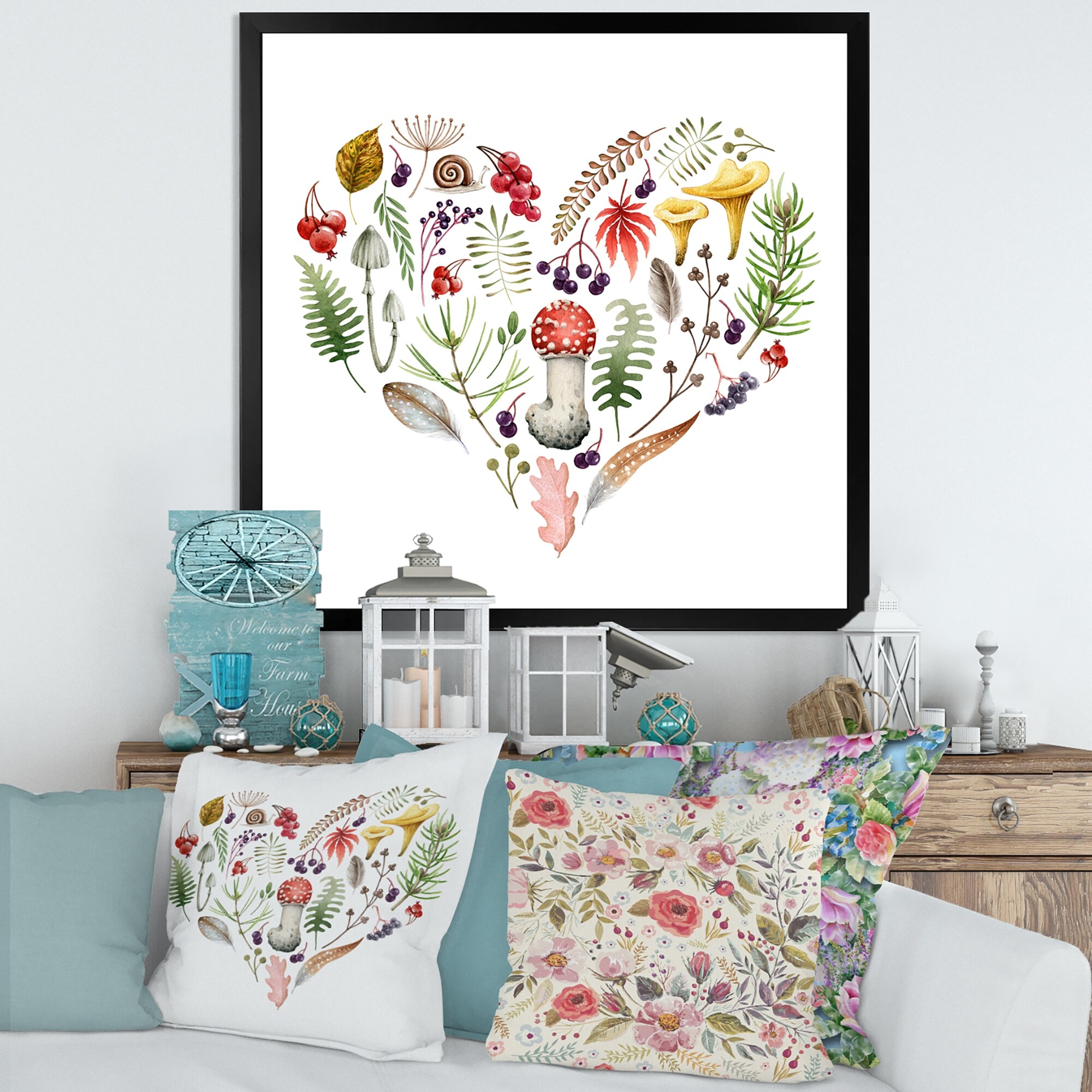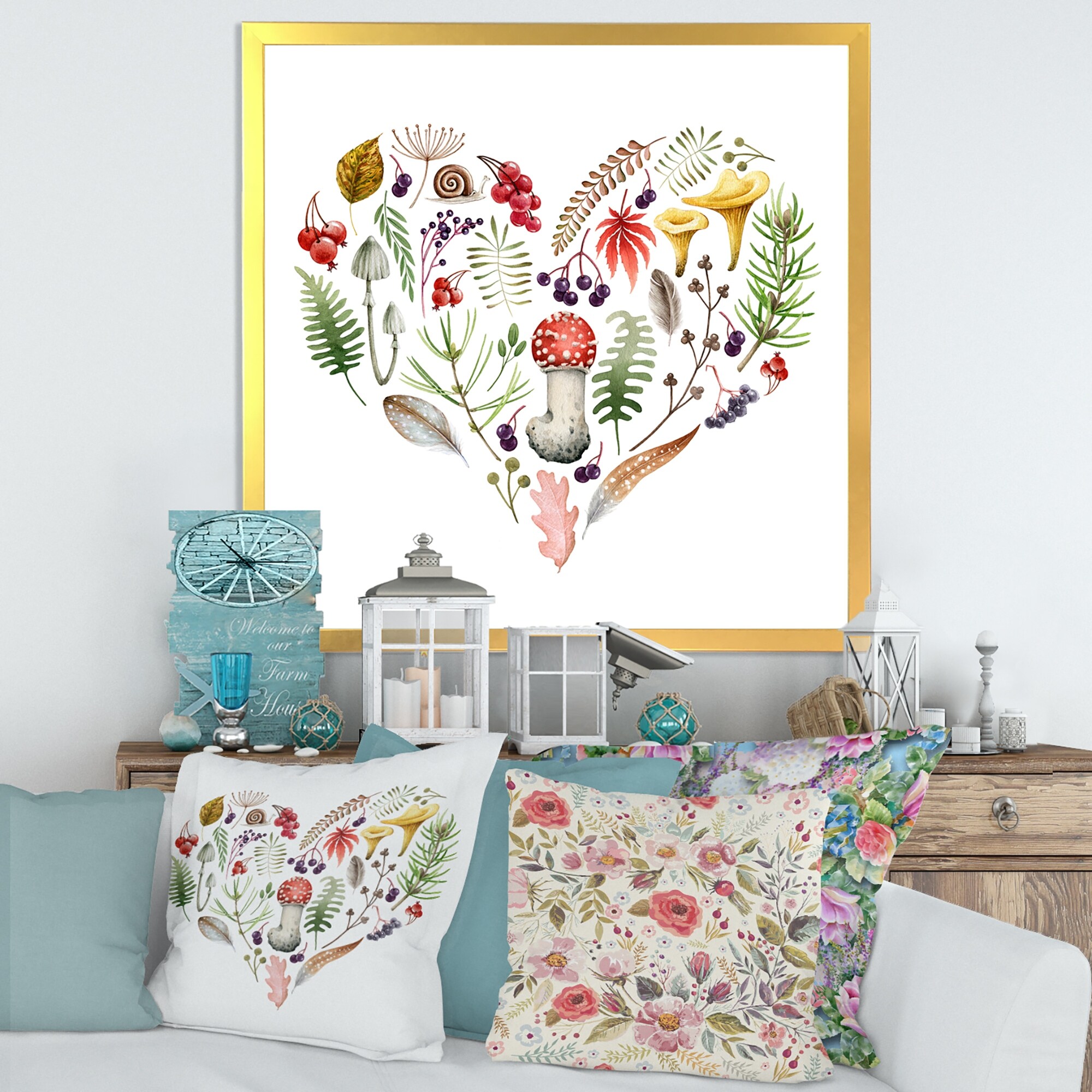 Designart "Forest Herbs And Mushrooms Heart Shape" Traditional Framed Art Print