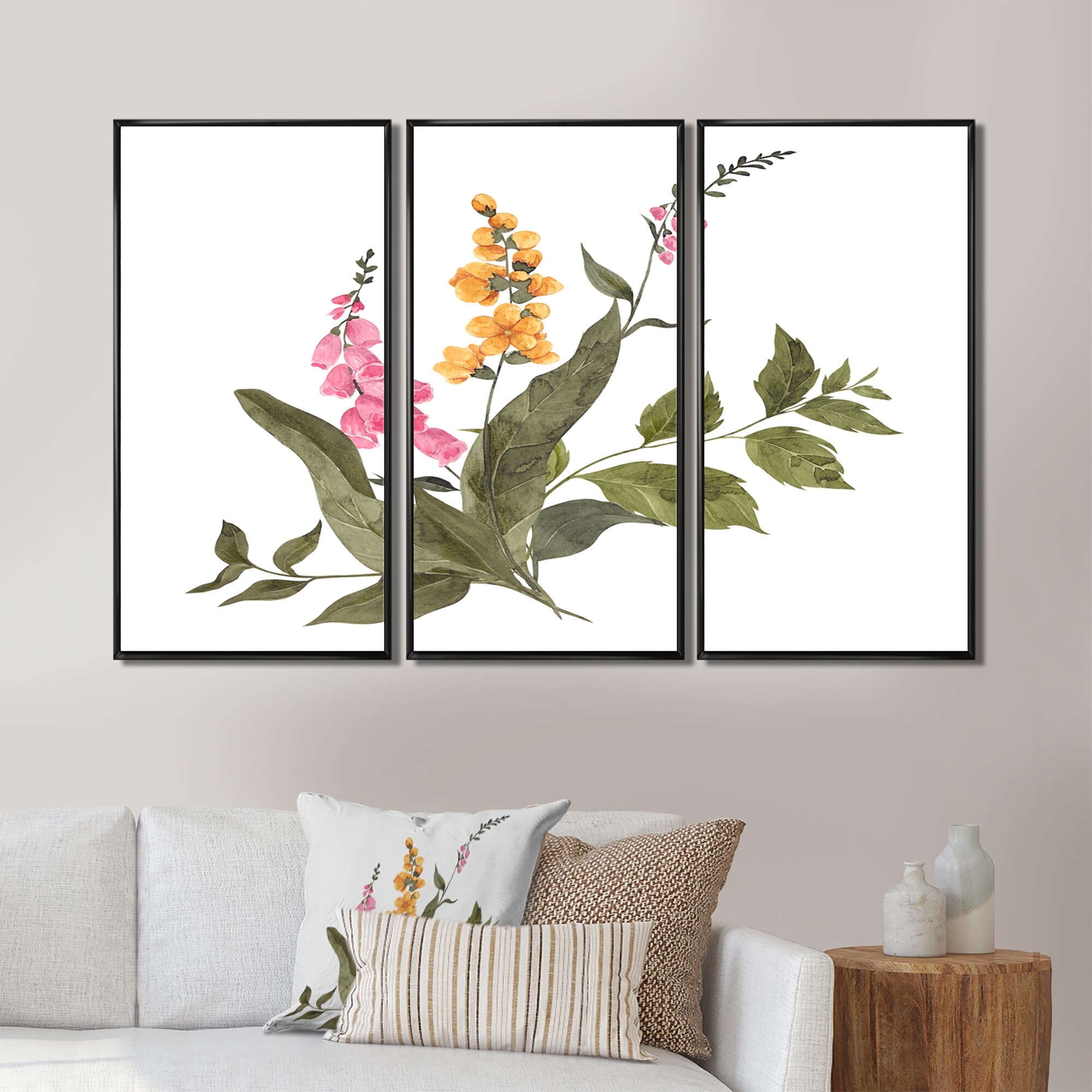 Designart "Vintage Bouquet With Wildflowers And Herbs III" Traditional Framed Artwork Set of 3 - 4 Colors of Frames