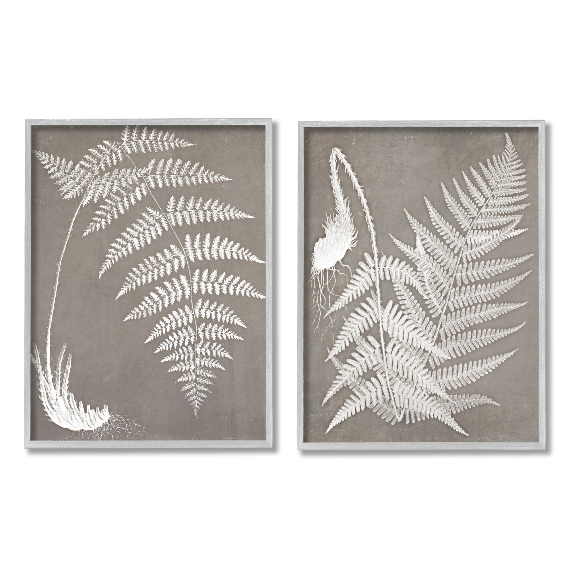Stupell Industries Detailed Fern Plant White Botanical Herb Roots 2 Piece Framed Wall Art, Design by Graffitee Studios - Grey