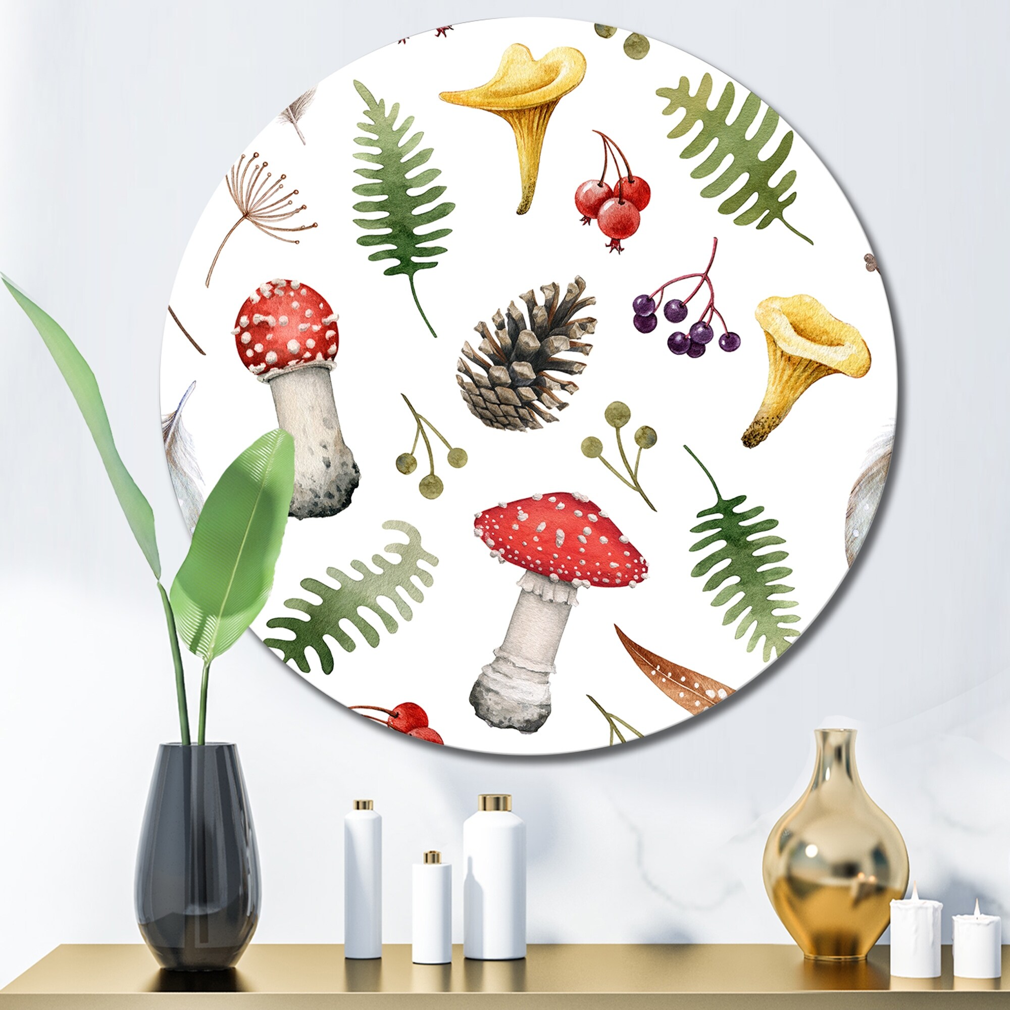 Designart 'Wild Forest Herbs And Mushrooms' Patterned Metal Circle Wall Art