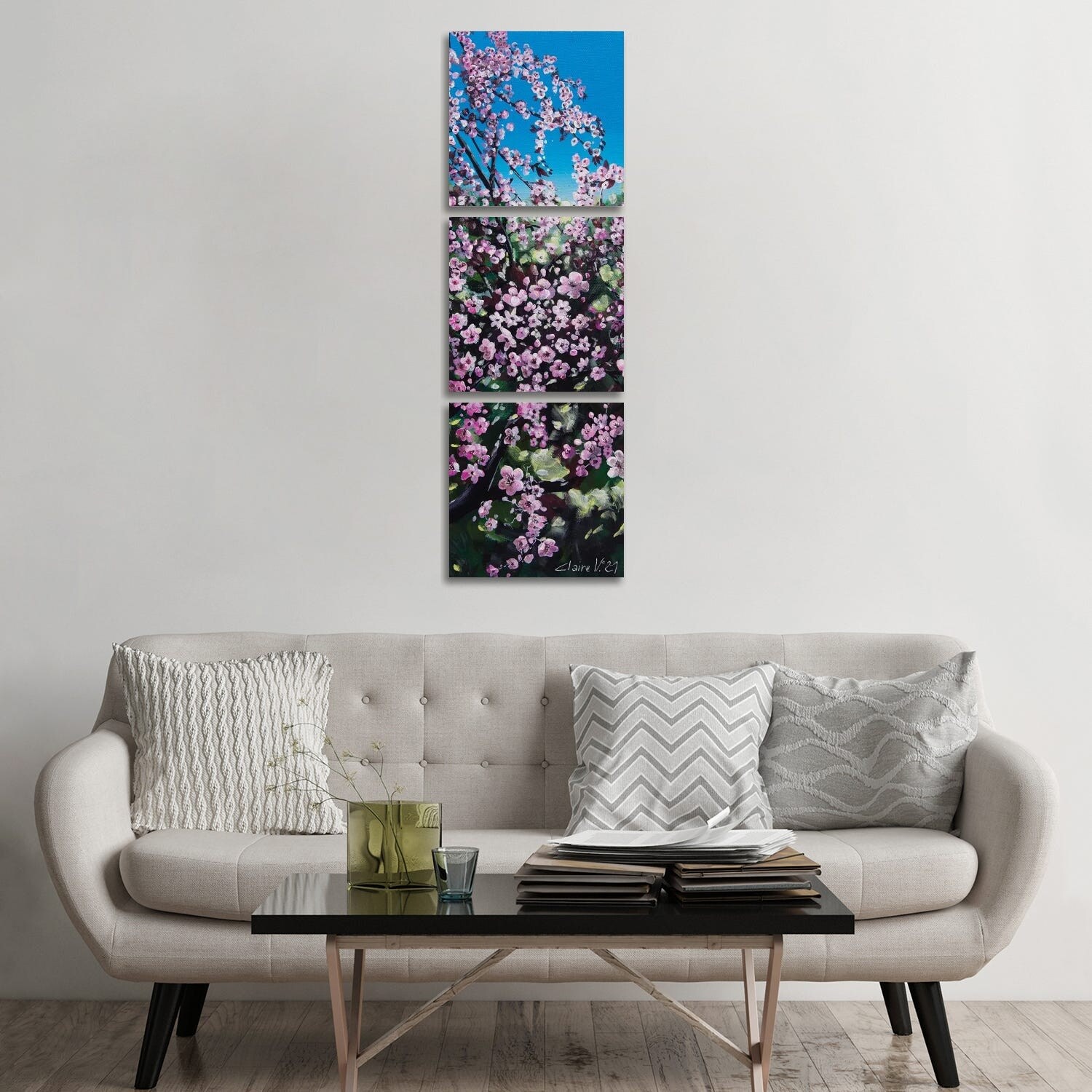 iCanvas "Le Prunus Du Jardin" by Claire Morand 3-Piece Canvas Wall Art Set