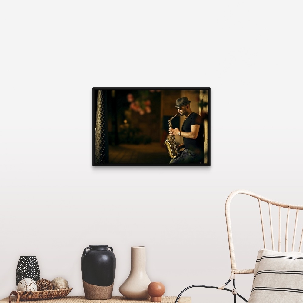 "Mood With Jazz" Black Float Frame Canvas Art