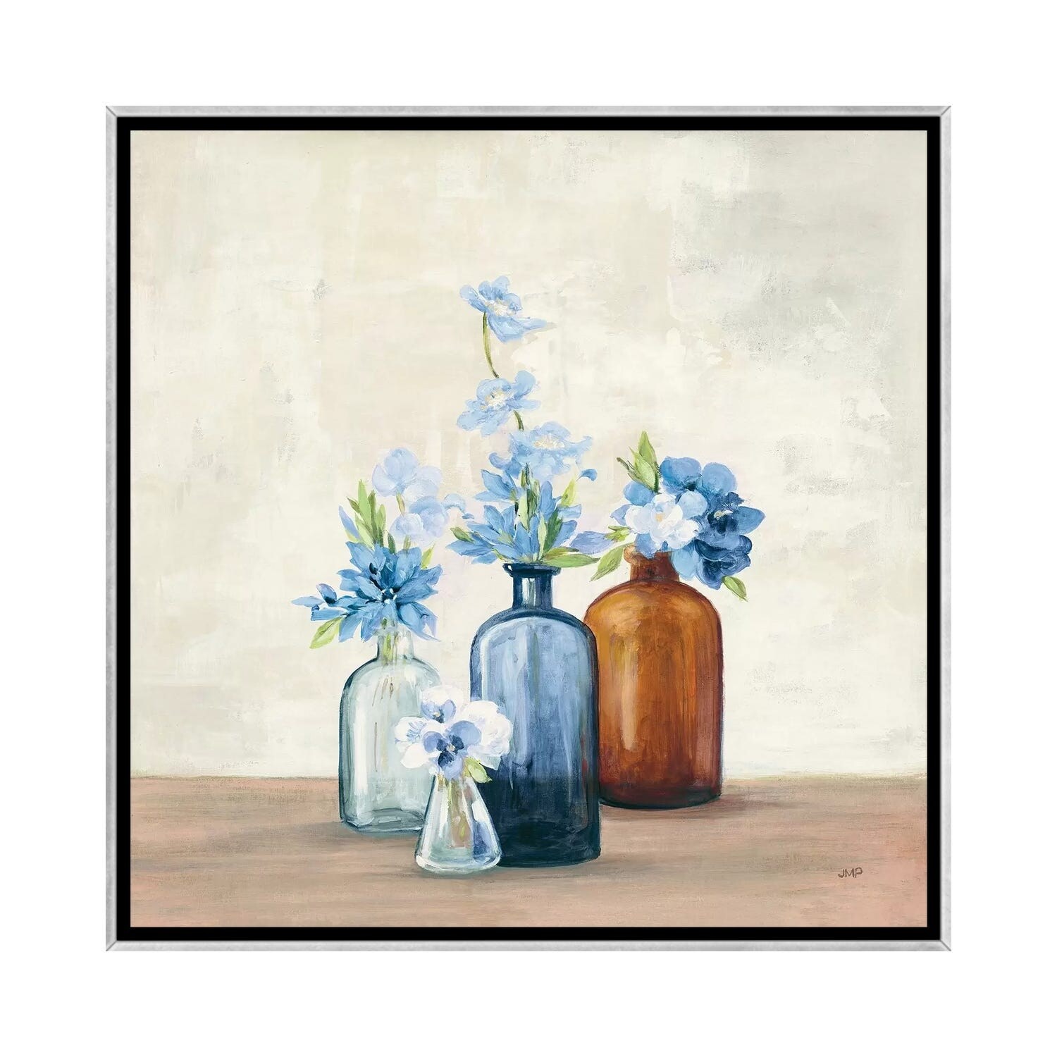iCanvas "Morning Bouquet Blue Gray Crop" by Julia Purinton Framed