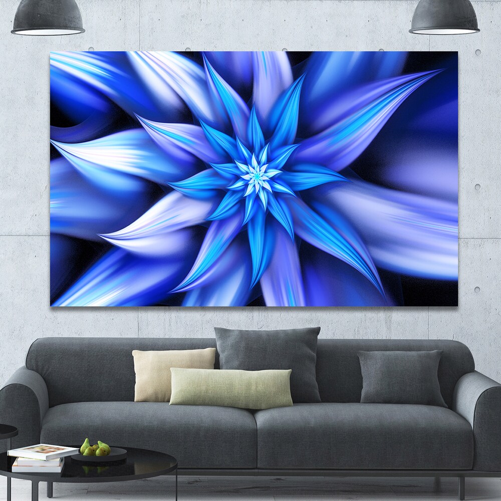 Designart "Dancing Blue Flower Petals" Extra Large Floral Canvas Art Print