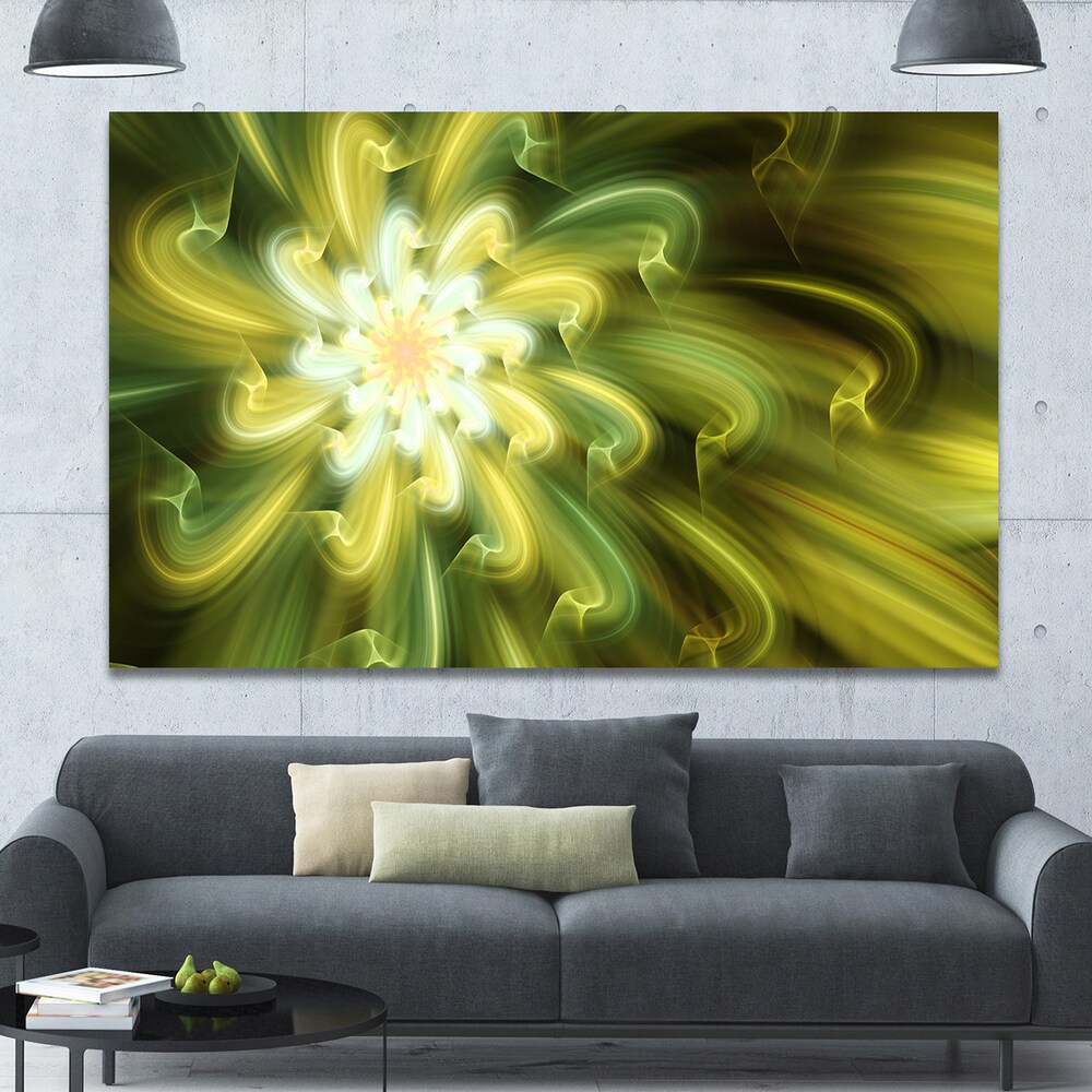 Designart "Dance of Yellow Fractal Petals" Extra Large Floral Wall Art on Canvas