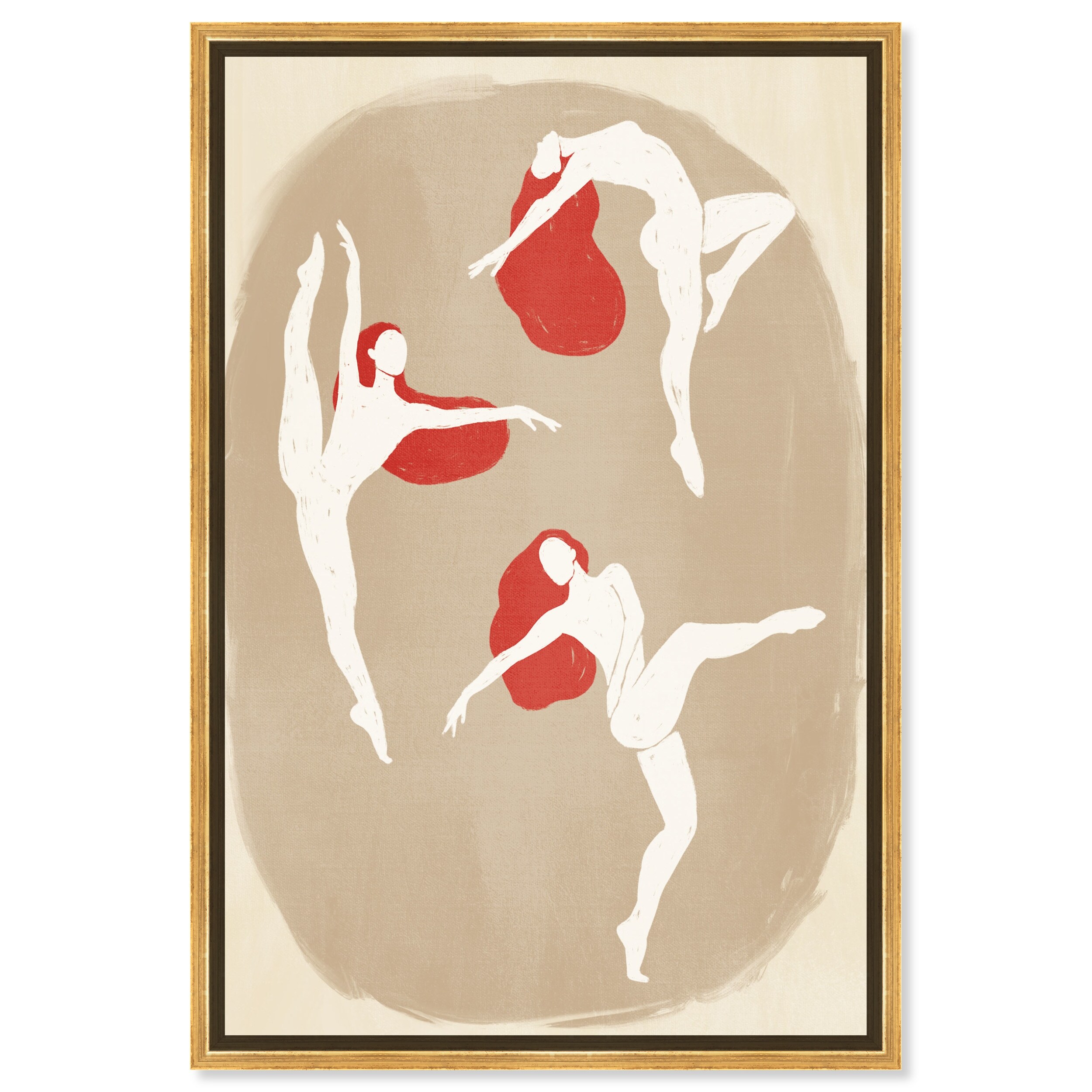 "The Dance", Ballet Dancing Women Modern White Framed Canvas Wall Art Print for Bedroom