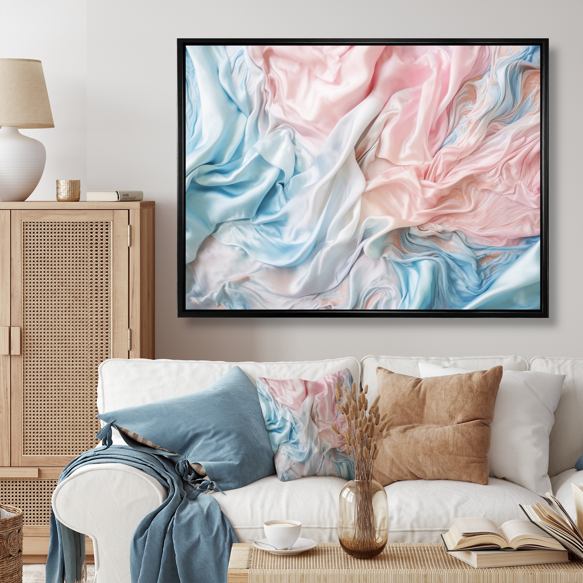 Designart "Pink Blue Dancing Colors I" Abstract Marble Framed Canvas Prints