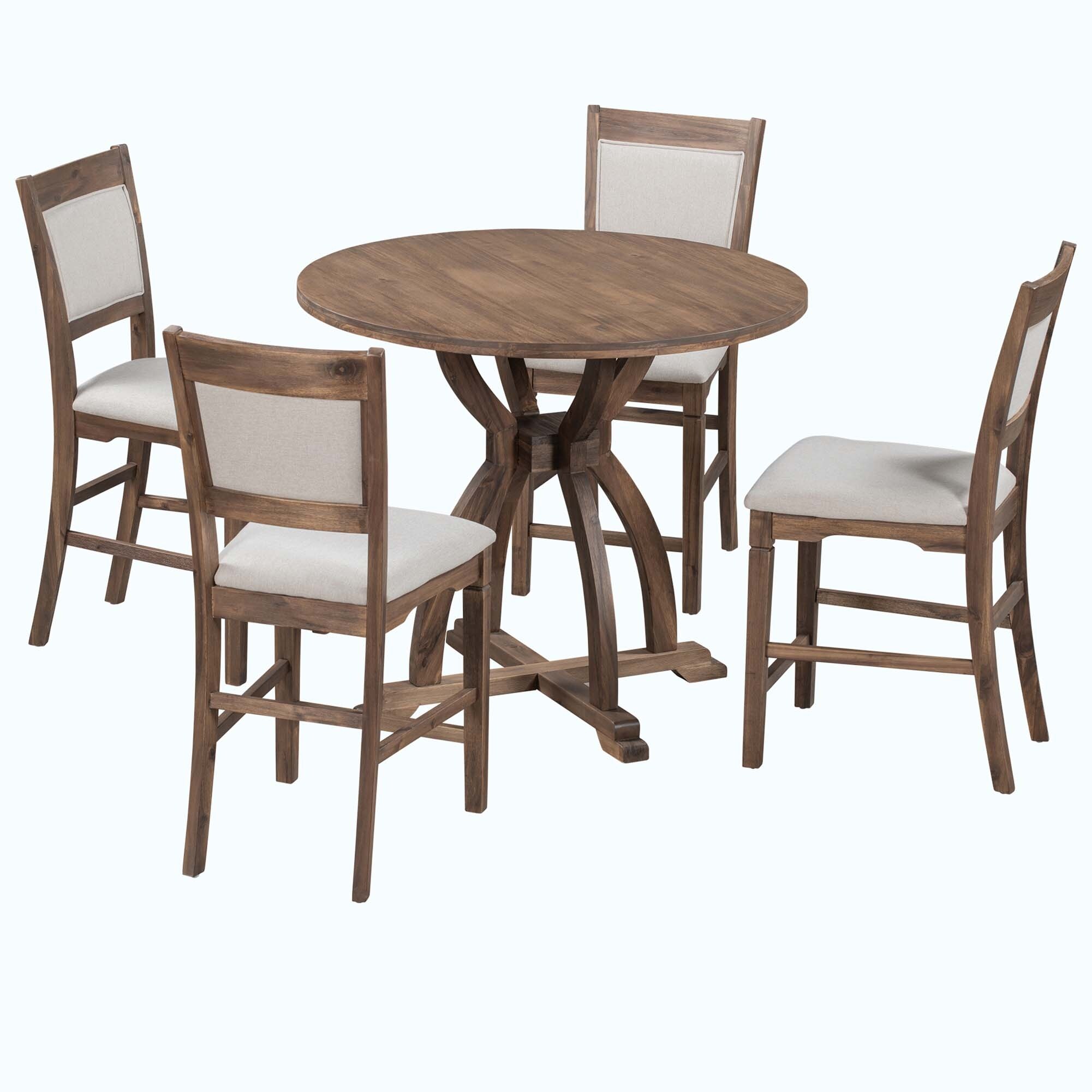 Farmhouse 5-Piece Round Dining Table Set with Trestle Legs and 4 Upholstered Dining Chairs Classic Design Dining Sets