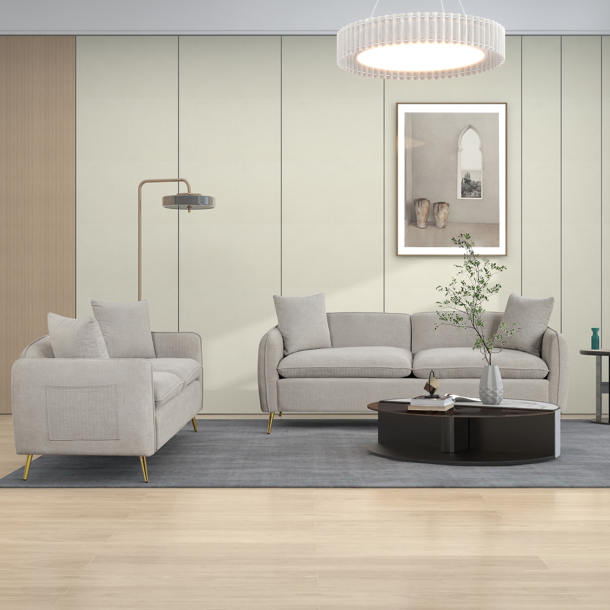 Modern Frosted Velvet Sofa Set with Metal Legs and Button Tufted Backrest