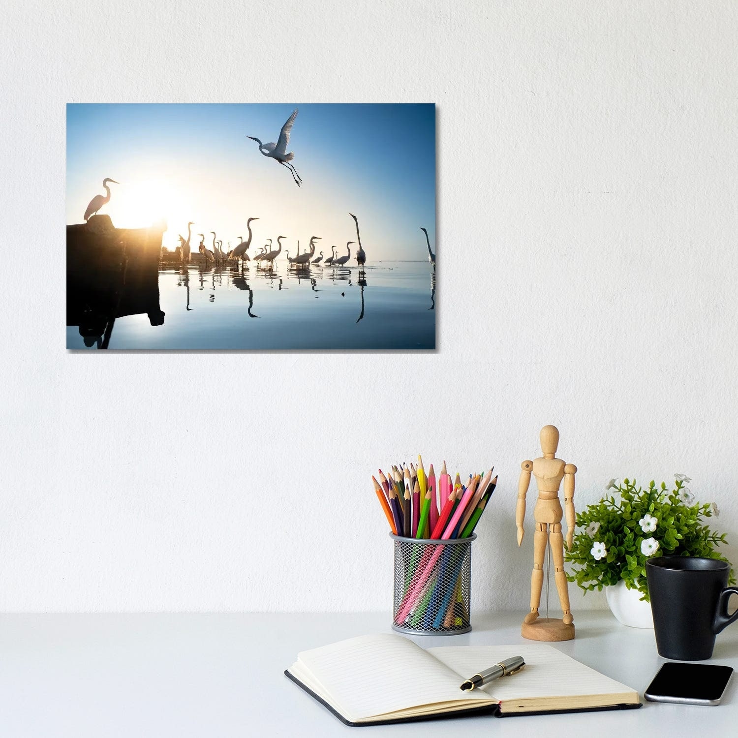 iCanvas "Boat And Herons" by Moises Levy Canvas Print