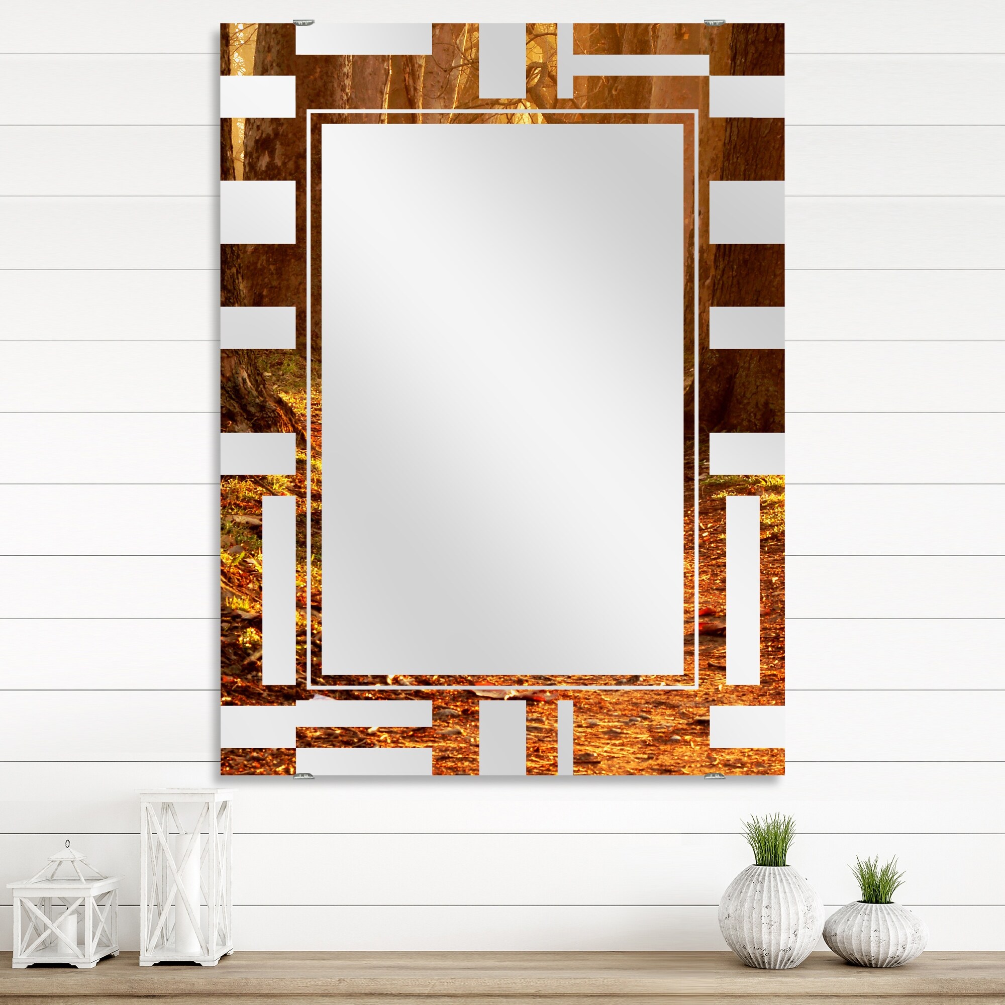 Designart 'Magic Morning at the Fall Park' Landscape Printed Wall Mirror