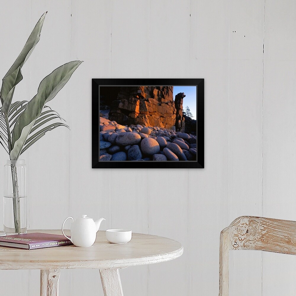 "Maine, Acadia National Park, Sunlight over the rocks" Black Framed Print