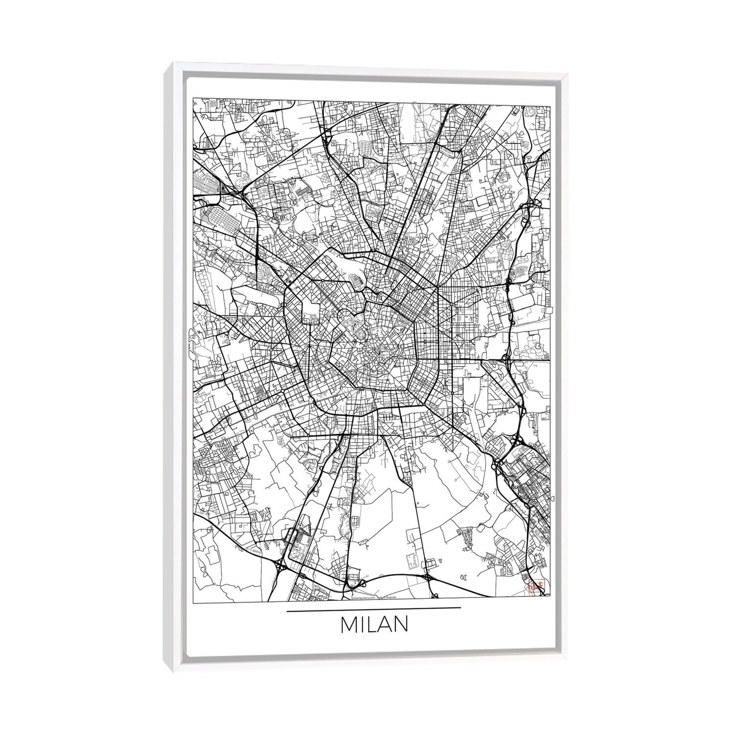 iCanvas "Milan Minimal Urban Blueprint Map" by Hubert Roguski Framed Canvas Print
