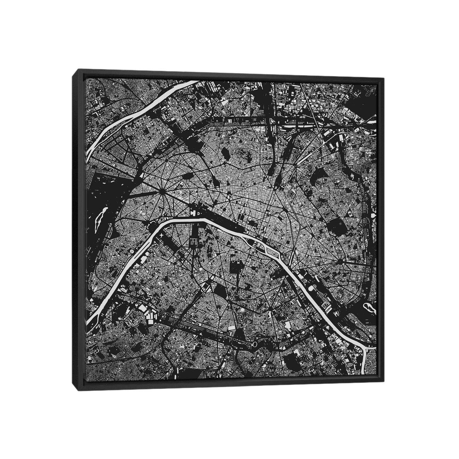 iCanvas "Paris Urban Map (Black)" by Urbanmap Framed Canvas Print