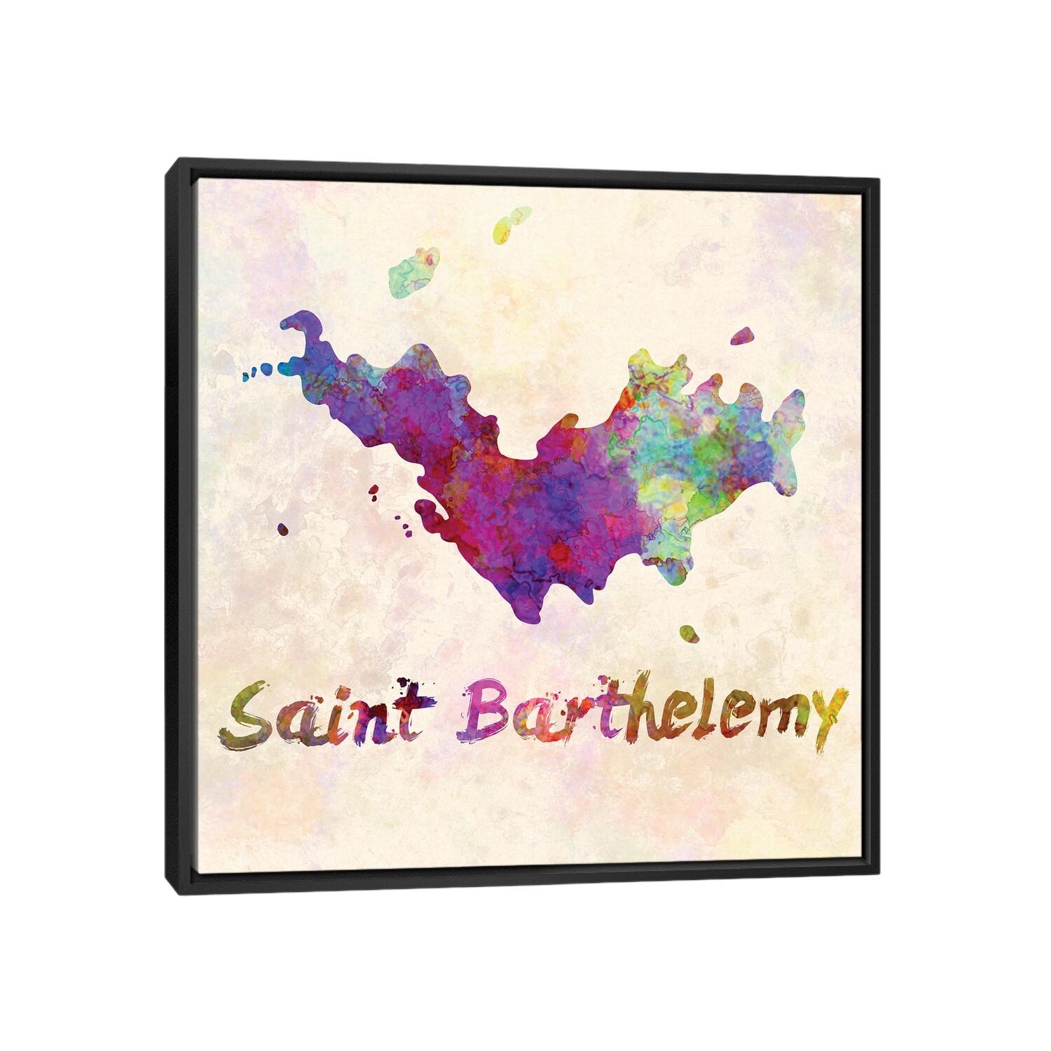 iCanvas "Saint Barthelemy Map in Watercolor" by Paul Rommer Framed Canvas Print