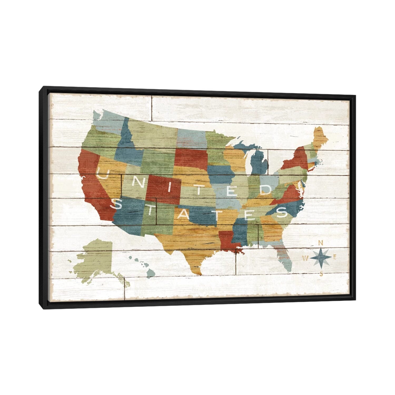 iCanvas "Barnboard Map" by Sue Schlabach Framed Canvas Print