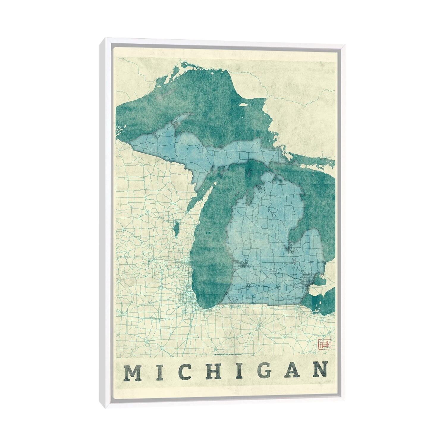 iCanvas "Michigan Map" by Hubert Roguski Framed Canvas Print