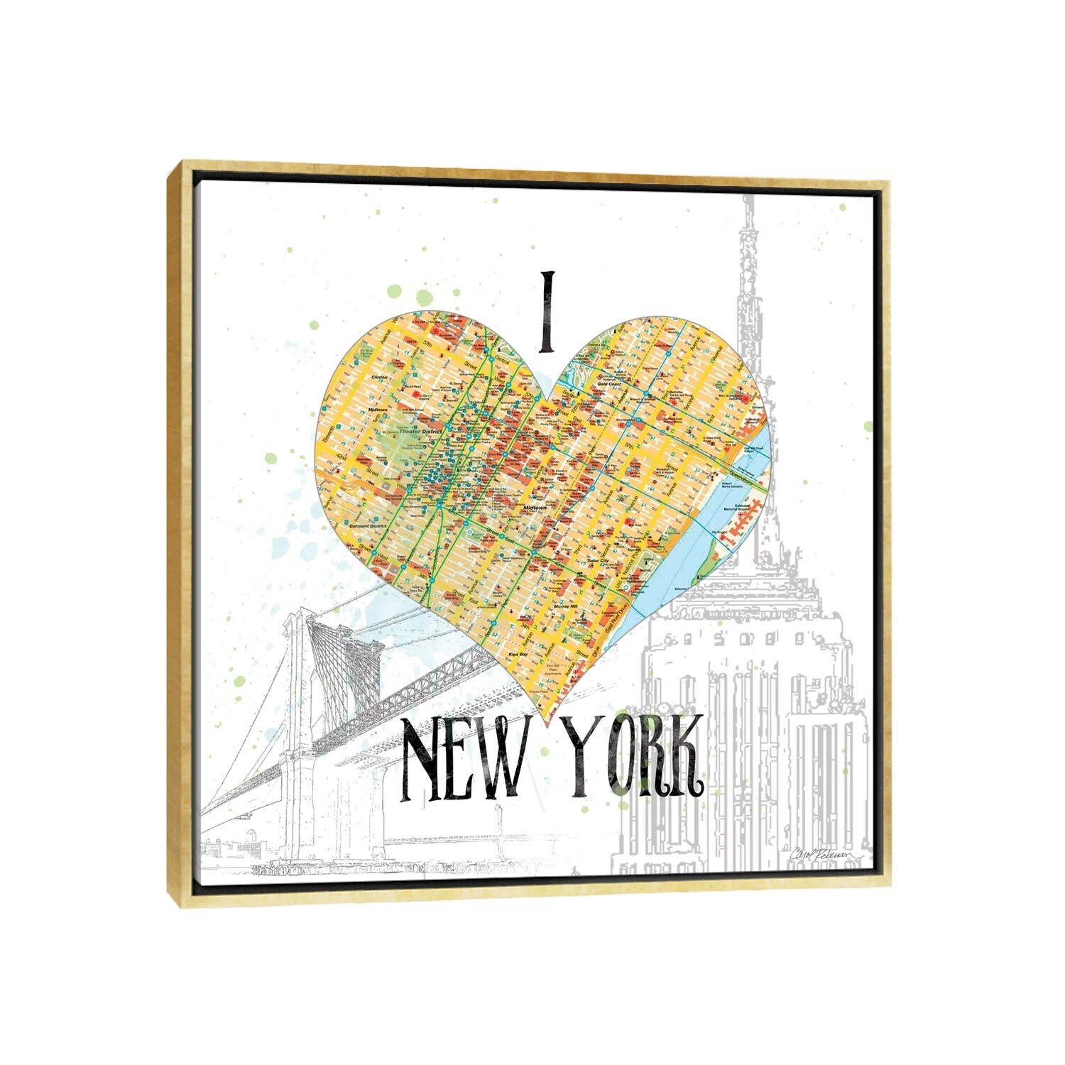 iCanvas "I Love New York Map" by Carol Robinson Framed Canvas Print