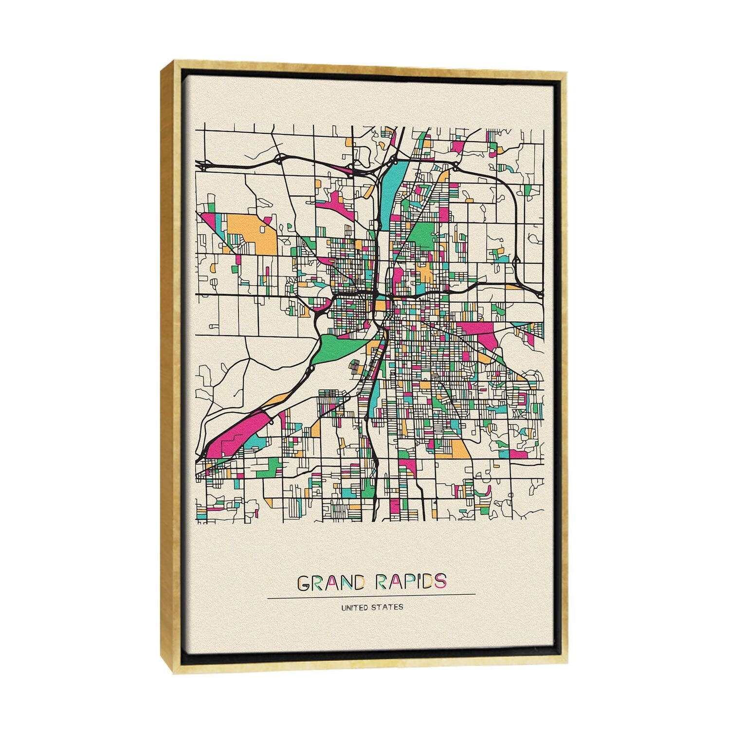iCanvas "Grand Rapids, Michigan Map" by Ayse Deniz Akerman Framed