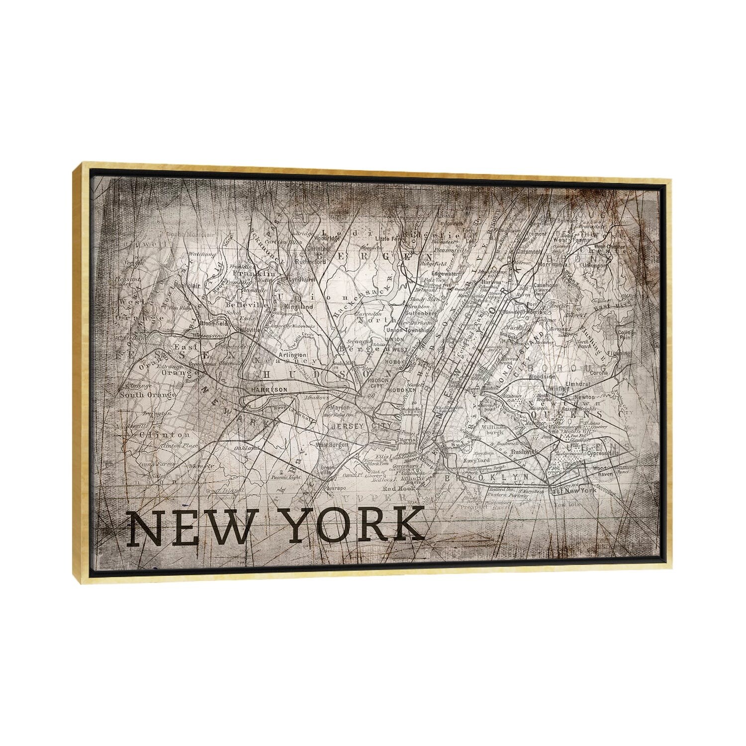 iCanvas "New York Map, Vintage" by PI Galerie Framed Canvas Print