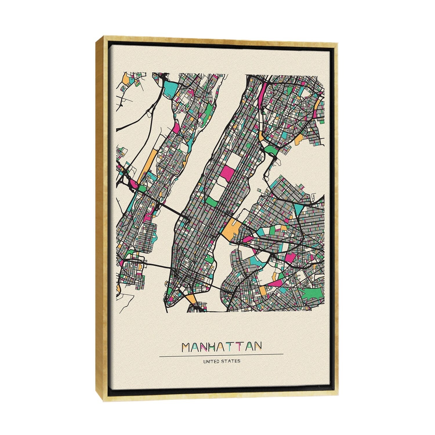 iCanvas "Manhattan, New York Map" by Ayse Deniz Akerman Framed