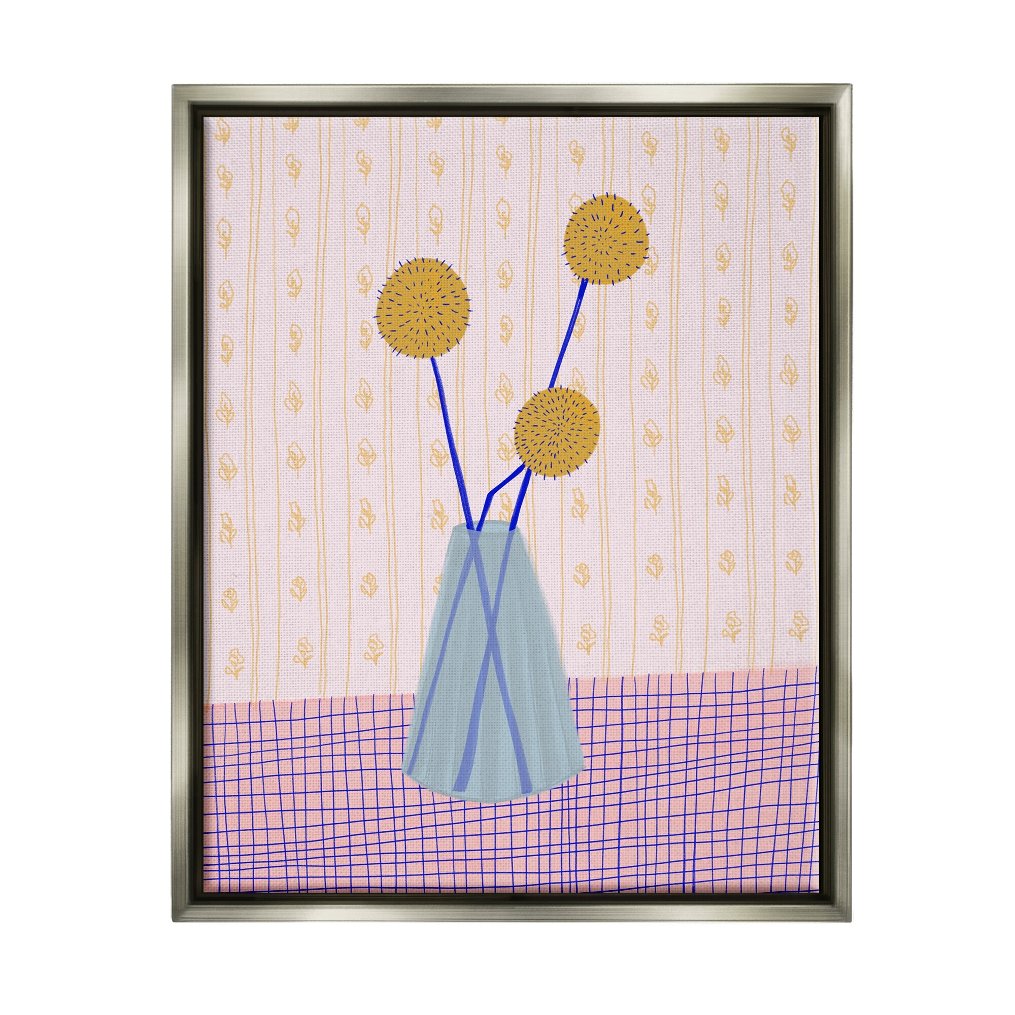 Stupell Industries Modern Craspedia Botanical Blooms Framed Floater Canvas Wall Art by Birgit Maria Kiennast