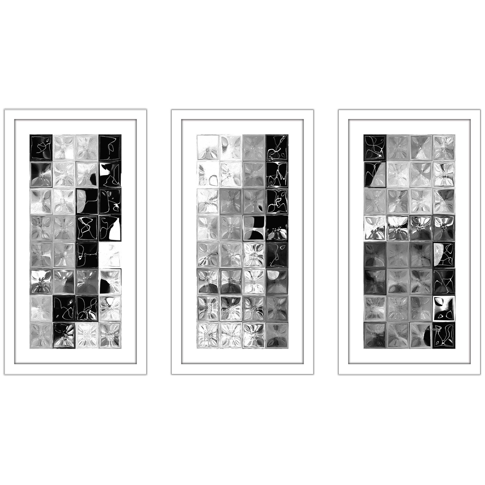 "Tile Art #7 2012" by Mark Lawrence Print in Floating Canvas, Set of 3 - Grey